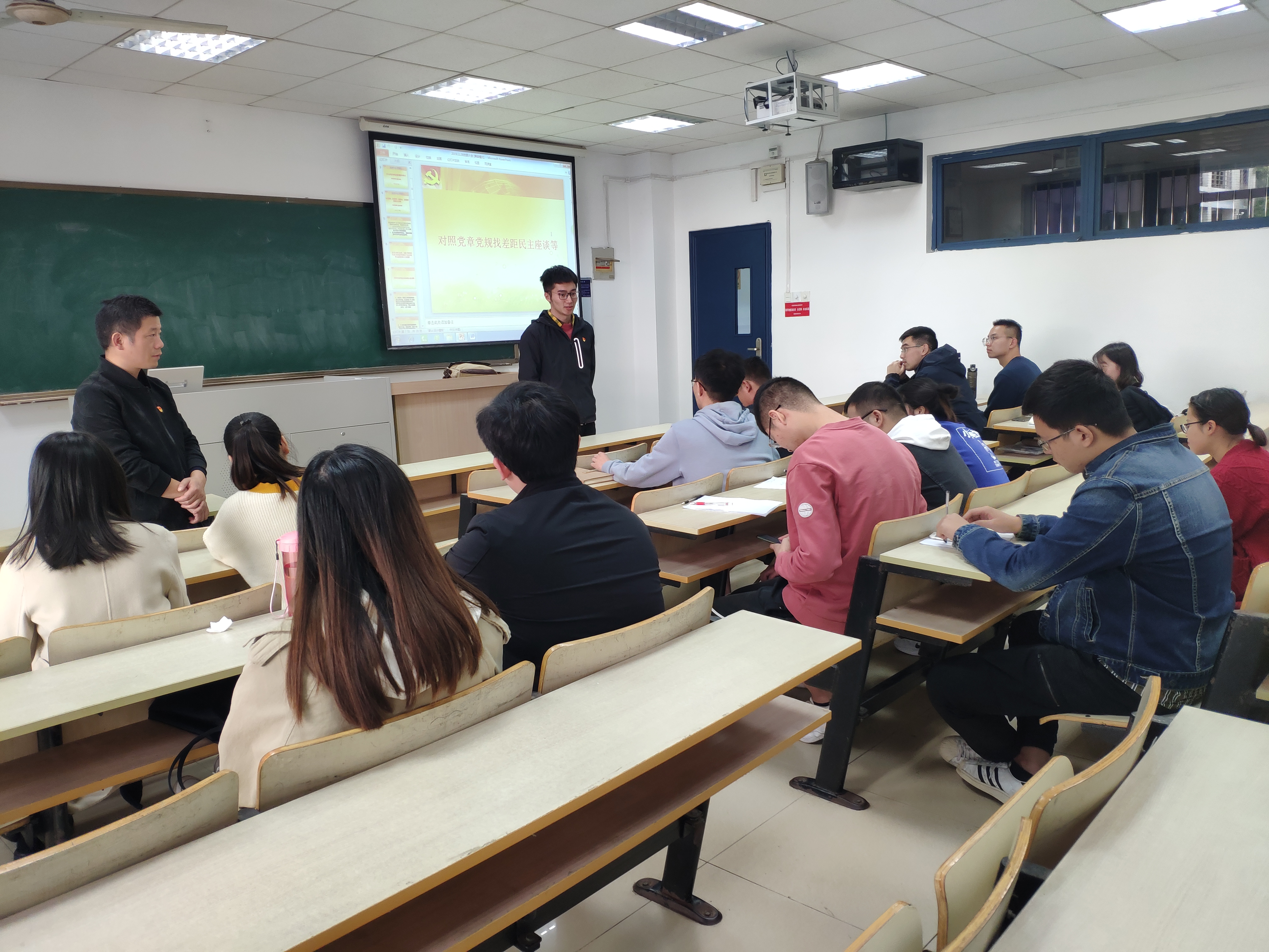最后,支部组织开展了“对照党章党规找差距座谈”活动。支部书记带领大家重新学习了党章和相关党规等。在此基础上,支部书记胡国宝老师首先进行了自我批评,找出自己的不足并提出自我改进的措施等;随后,与会党员逐个进行自我批评,并对自己的不足提出整改措施等。