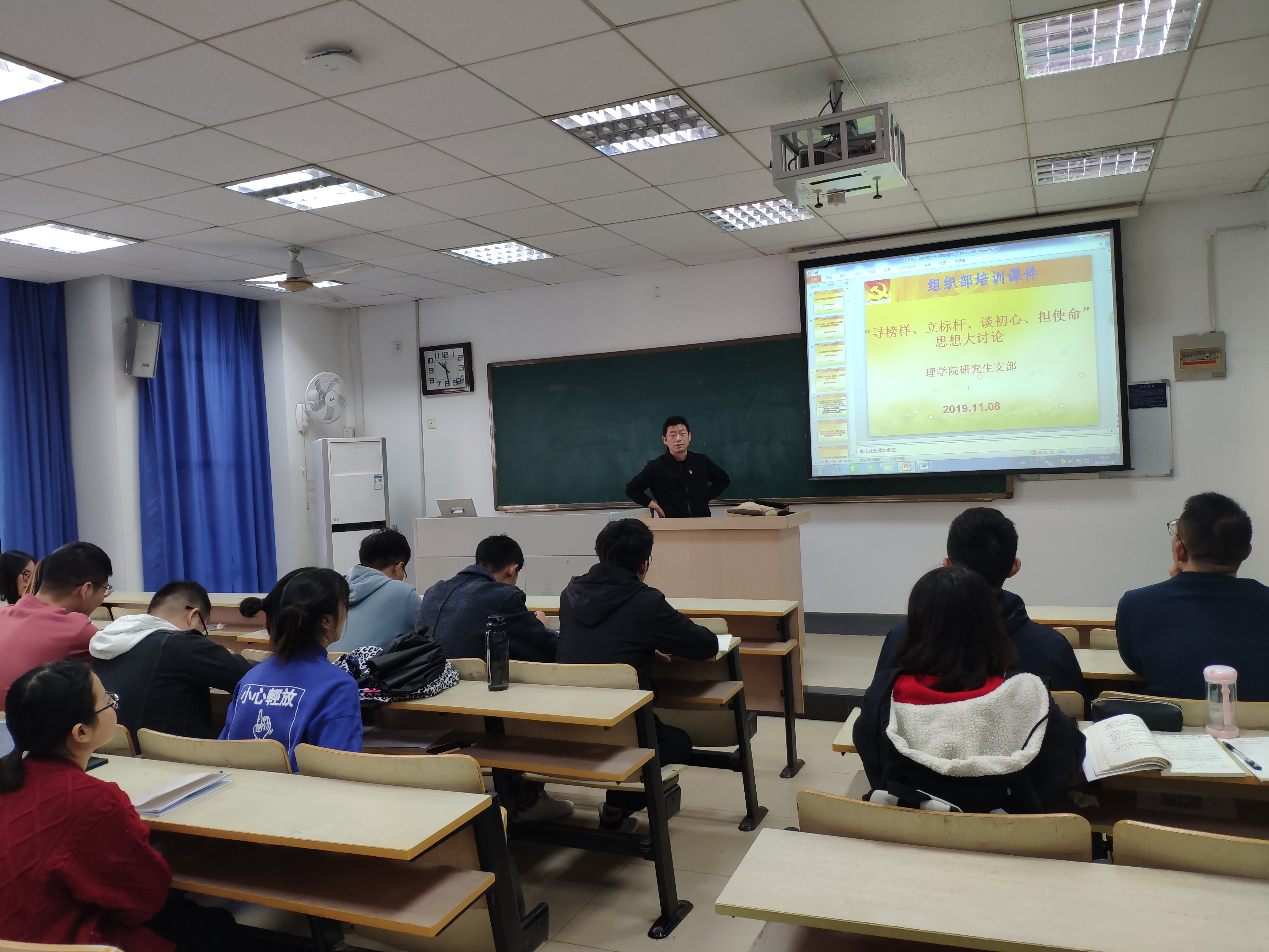2019年11月8日上午,太阳成集团tyc研究生支部开展了“寻榜样、立标杆、谈初心、担使命”思想大讨论暨对照党章党规找差距主题党日活动。活动内容包括:1、“不忘初心、牢记使命”主题教育理论知识当堂提问;2、党的十九届四中全会精神集中学习;3、“寻榜样、立标杆、谈初心、担使命”思想大讨论;4、再次对照“四重四亮”做好研究生志愿结对帮扶2017级本科学业困难员工工作部署;5、对照党章党规找差距民主座谈等。此次活动由支部书记胡国宝老师主持,研究生支部党员同志参加了此次活动。