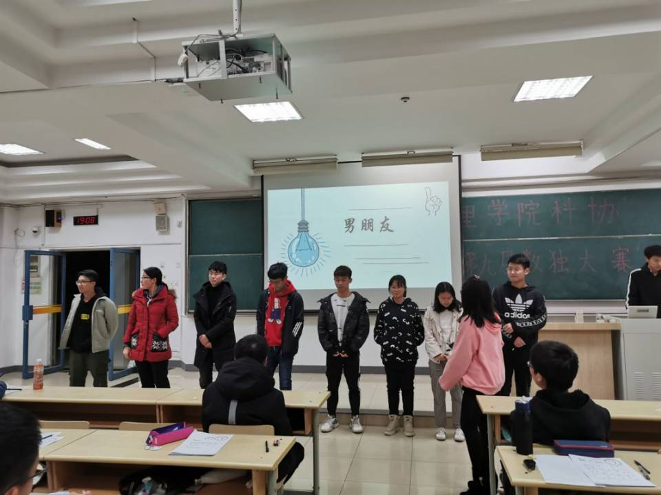比赛伊始,参赛者们快速进入状态,全神贯注地答题,教室传出轻盈的笔划过纸张的沙沙声。比赛间隙,为了缓解压力,活跃大脑,活动组织开展了“谁是卧底”的小游戏,欢笑声冲散了答题时的紧张氛围。