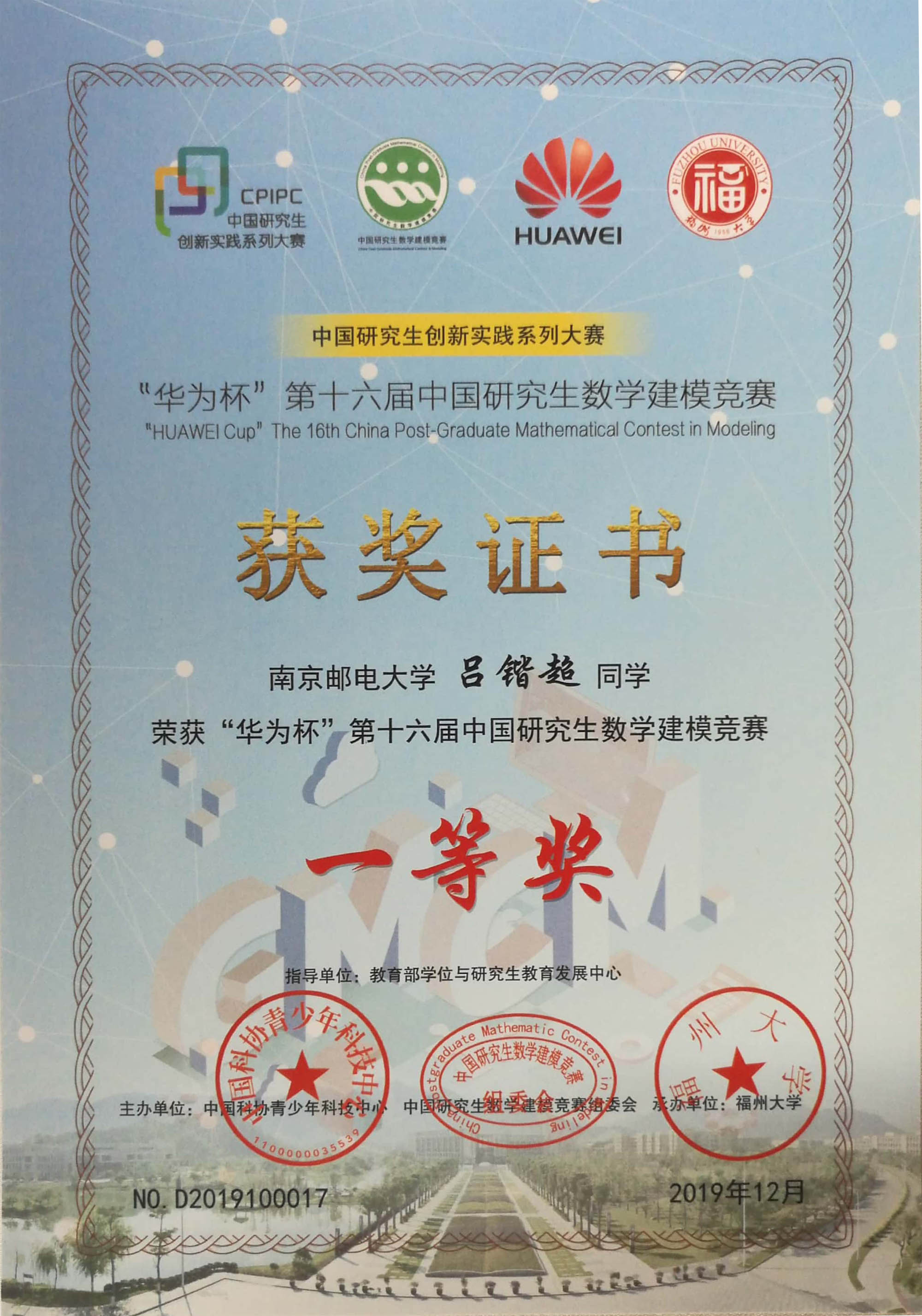 2019年11月29日-12月1日,“华为杯”第十六届中国研究生数学建模竞赛颁奖大会在福州大学进行,公司在此次竞赛中获得了一等奖1项,二等奖18项,三等奖19项的好成绩,一等奖队伍并获竞赛主办方的邀请到现场进行赛题学术交流,另外,公司荣获“华为杯”第十六届中国研究生数学建模竞赛优秀组织奖。