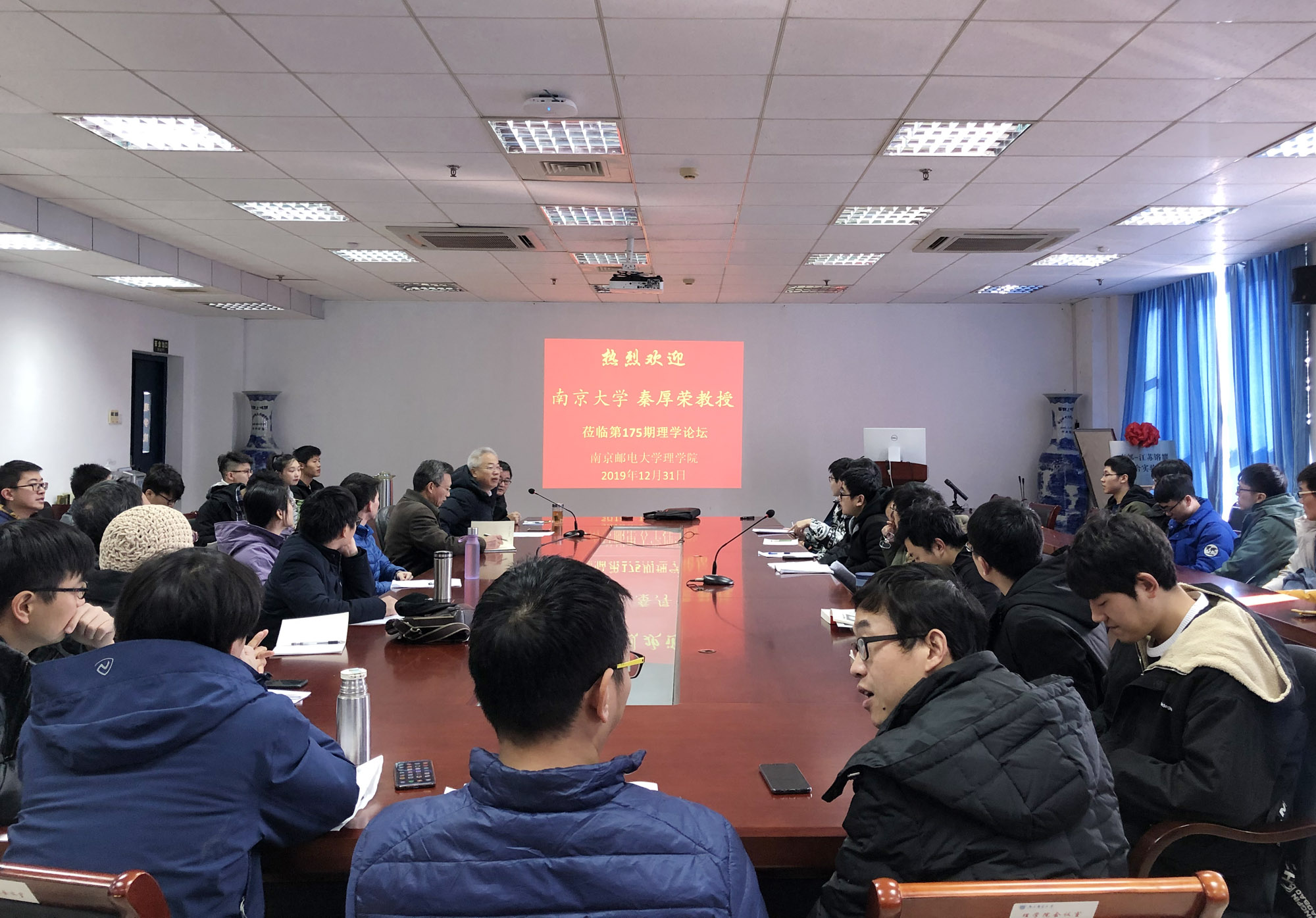 在2019年的最后一天,12月31日上午,太阳成集团tyc在教2-314会议室举行第175期理学论坛学术活动,南京大学秦厚荣教授应邀莅临论坛并做了题为“同余数问题”的学术报告,报告会由太阳成集团tyc副经理唐加山教授主持。