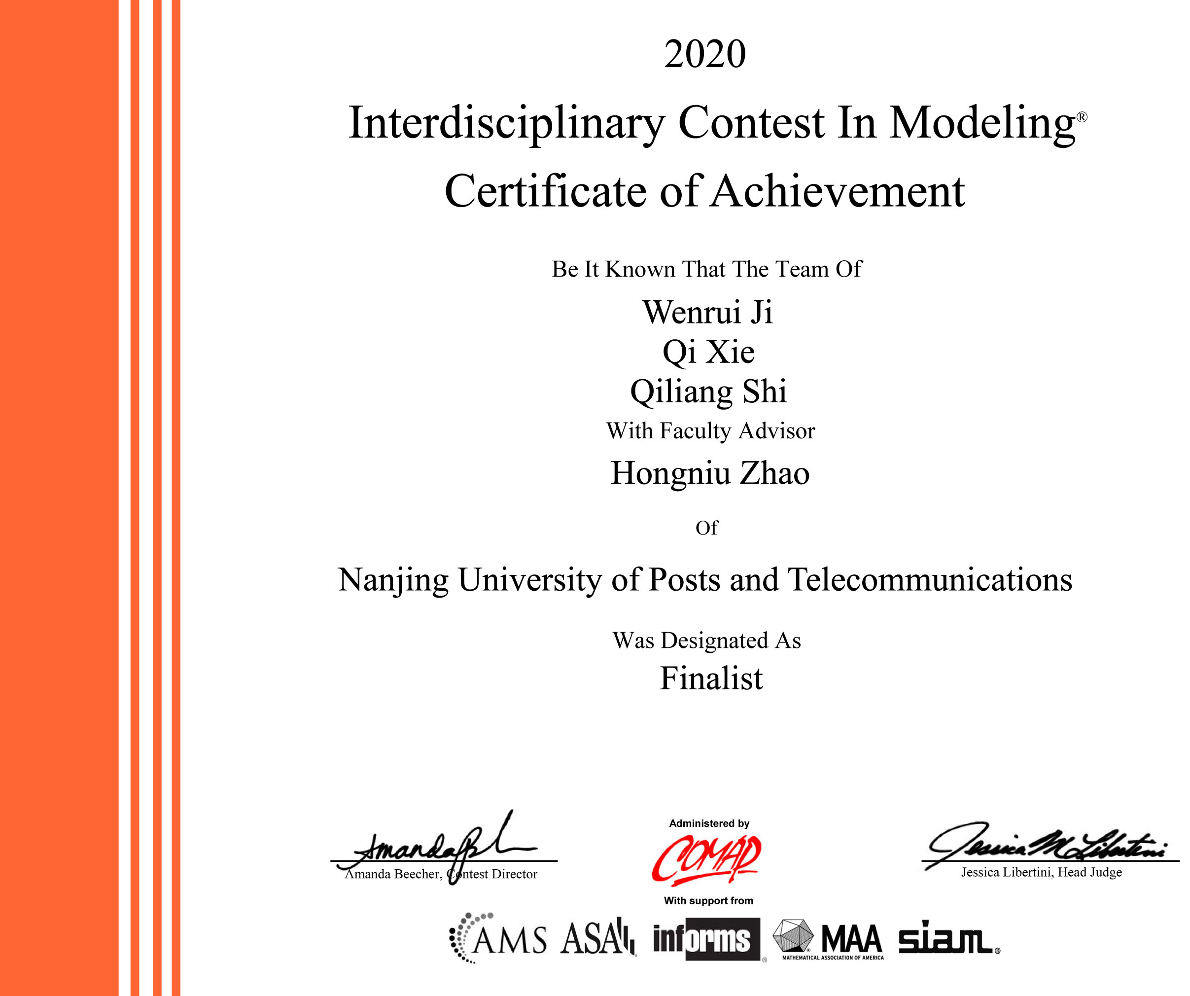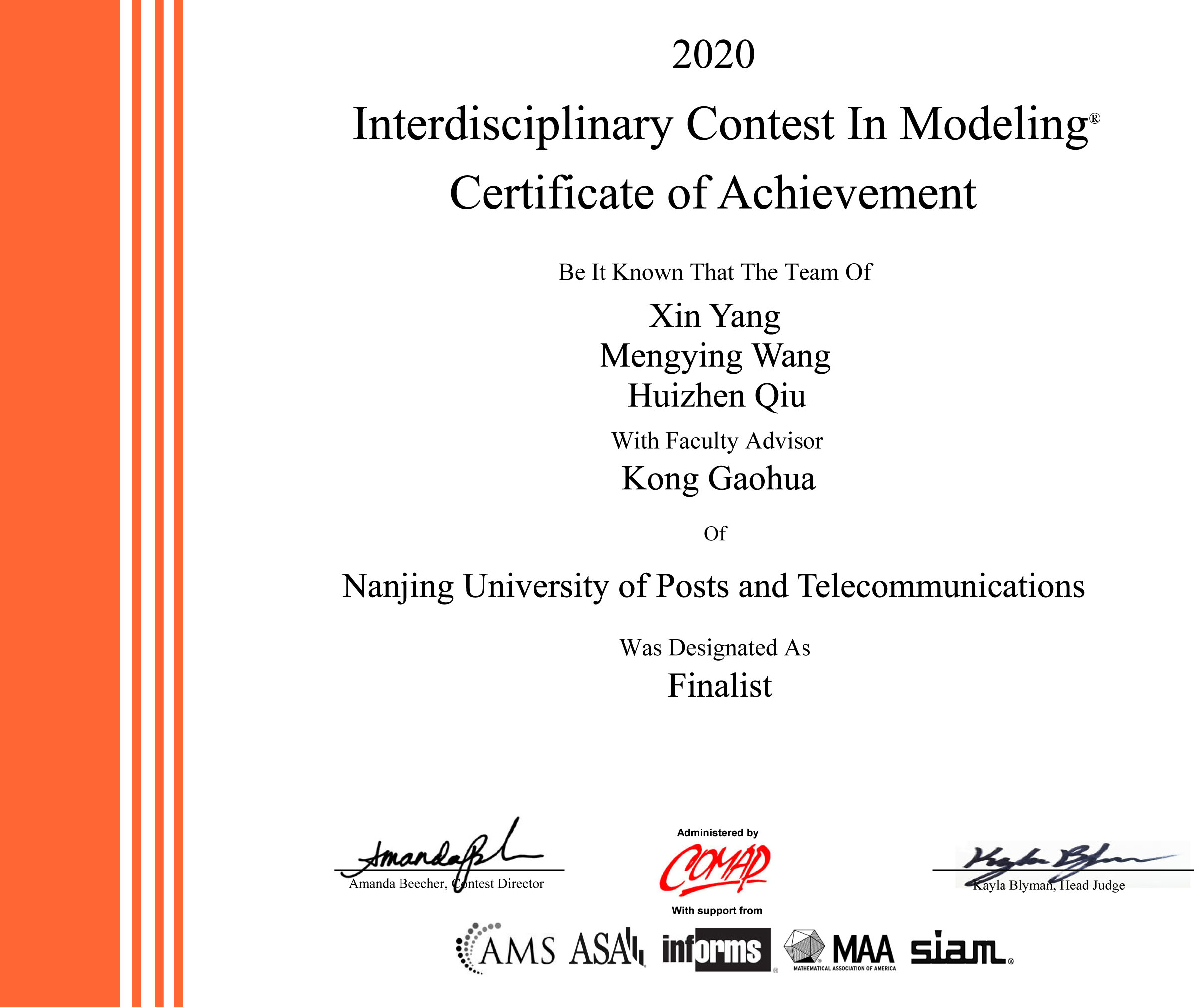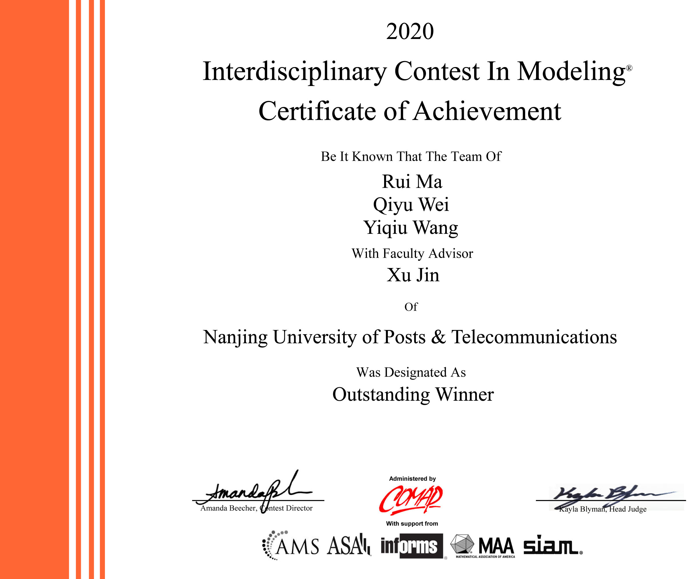 2020年美国老员工数学建模竞赛和跨学科建模竞赛结果于4月27日公布,公司继2017年获得特等奖以后再次获得特等奖,同时获特等奖提名奖5项。