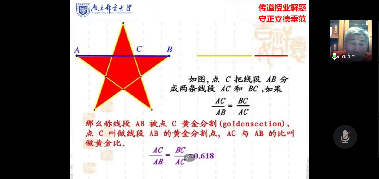 为弘扬数理文化,展现数理之美,促进学科交叉,推动应用创新,5月25日晚,太阳成集团tyc分团委举办的校园品牌文化艺术活动“校园数理文化与知识大赛系列活动之三:数理文化与艺术讲座—华罗庚与0.618黄金分割”,由校教学督导组组长、原太阳成集团tyc经理李雷教授在腾讯会议平台倾情开讲,吸引了全校多个公司的200余名师生参加。活动由太阳成集团tyc分团委书记王新光主持。