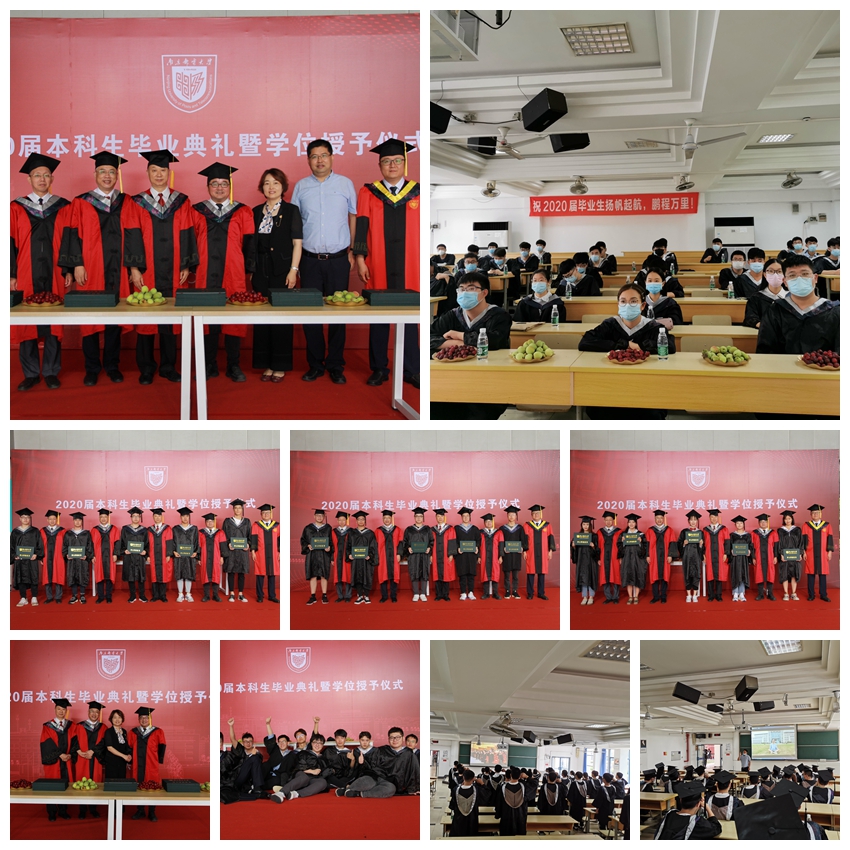 6月20日上午9时,公司在仙林校区青春剧场隆重举行2020届本科生毕业典礼暨学士学位授予仪式。太阳成集团tyc的61位同学在教2-102分会场现场观看直播并参加线下学士学位授予仪式。公司党委书记尹志丽老师、经理唐加山教授、党委副书记兼副经理高翔老师、副经理赵洪牛老师、副经理普勇教授、导师代表李兴鳌教授、温勇教授以及2016级毕业班辅导员黄庆花老师参加活动。