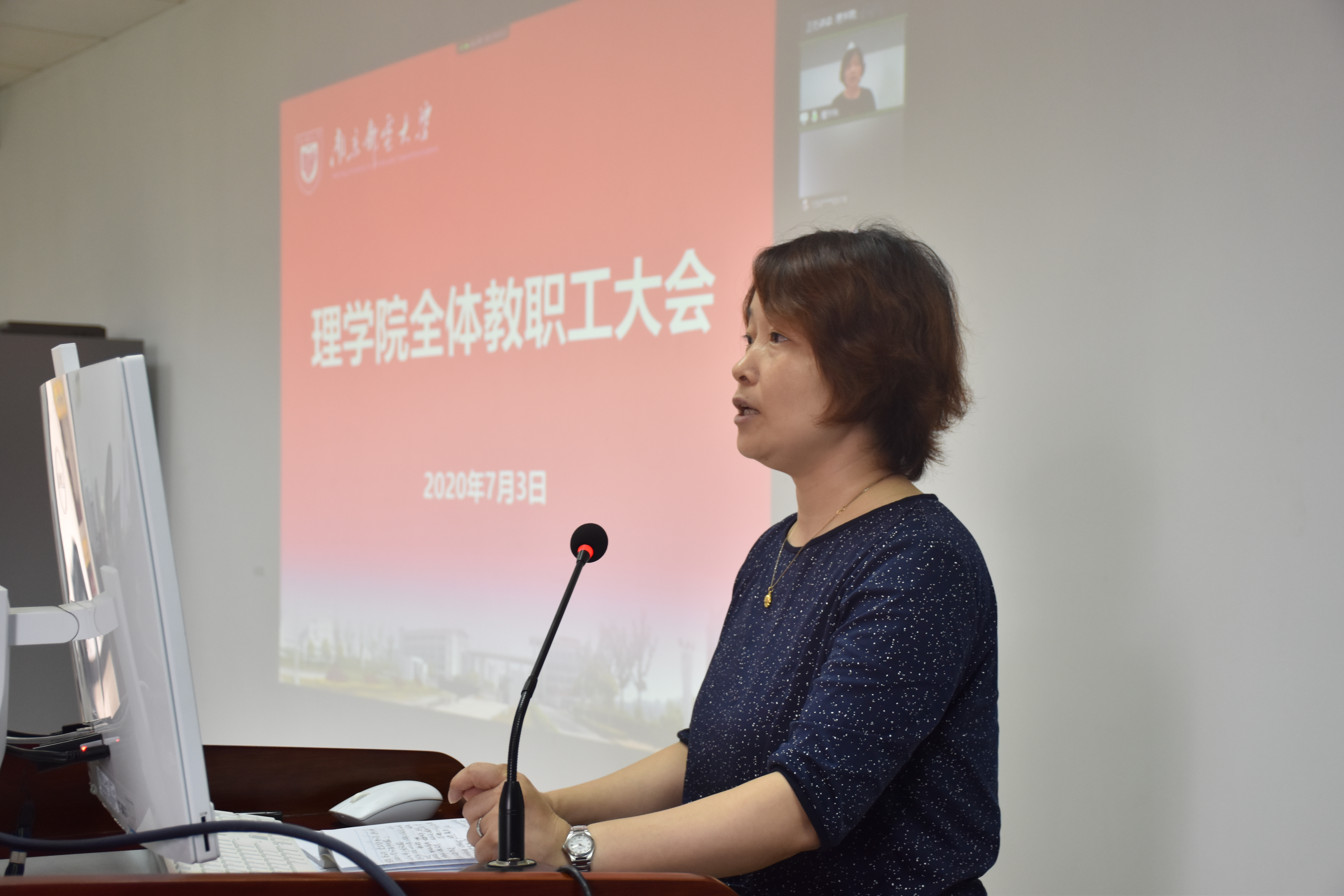 7月3日上午,太阳成集团tyc以线上和线下相结合的形式,召开了全院教职工大会。院领导班子、系(中心)主任、支部书记、院办老师和部分教师代表参加了在教2-314会议室举行的线下会议,公司其他教职工参加了线上腾讯会议,会议由公司党委书记尹志丽主持。