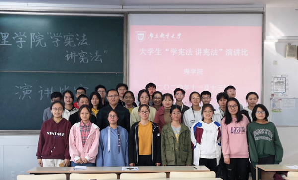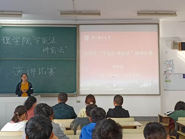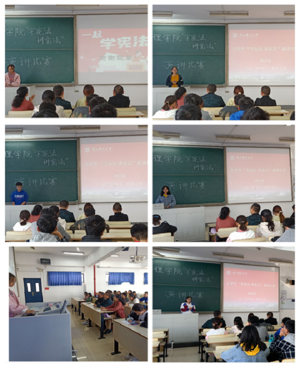 比赛伊始,各队参赛选手按顺序展示拍摄的“我与宪法”微视频,并围绕比赛主题用精彩的演讲谈宪法认识、论宪法精神,从多角度阐述对宪法的认识和理解,从国家、社会、个人等多个角度分析了学习宪法的重要性,给观众带来了一场精彩的宪法演讲盛宴,彰显了同学们深入学习宪法,始终忠于宪法,维护宪法权威的精神面貌。最终,刘凯斐组获得一等奖;石子凡等2个组获得二等奖,王何利等3个组获得三等奖。