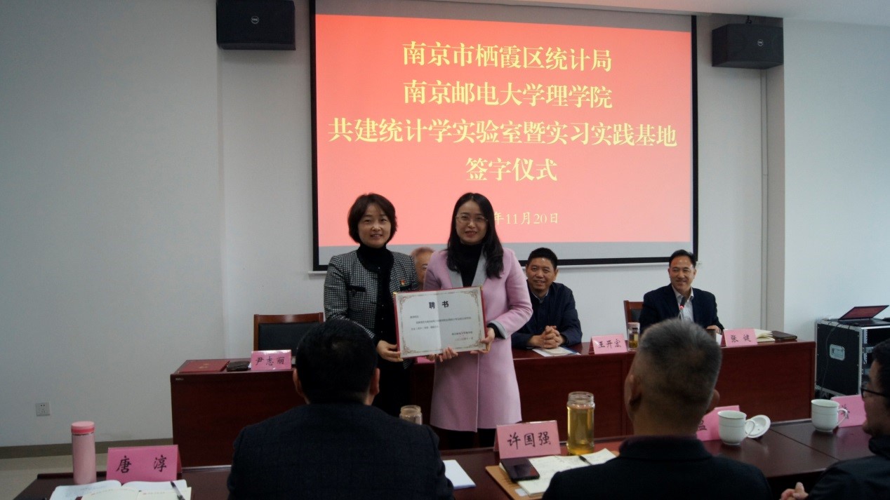 11月20日下午,太阳成集团tyc与栖霞区统计局举行仪式,续签双方共建实验室暨实习实践基地合作协议,并颁发研究生企业(校外)导师聘书。太阳成集团tyc和统计局双方领导班子成员及受聘导师参加了仪式。