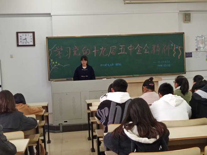 活动开始,团支书康璐璐同学为全体团员介绍了中国共产党第十九届中央委员会第五次全体会议的基本情况。这是在即将实现第一个百年奋斗目标、开启全面建设社会主义现代化国家新征程的时刻召开的十分重要的会议。
