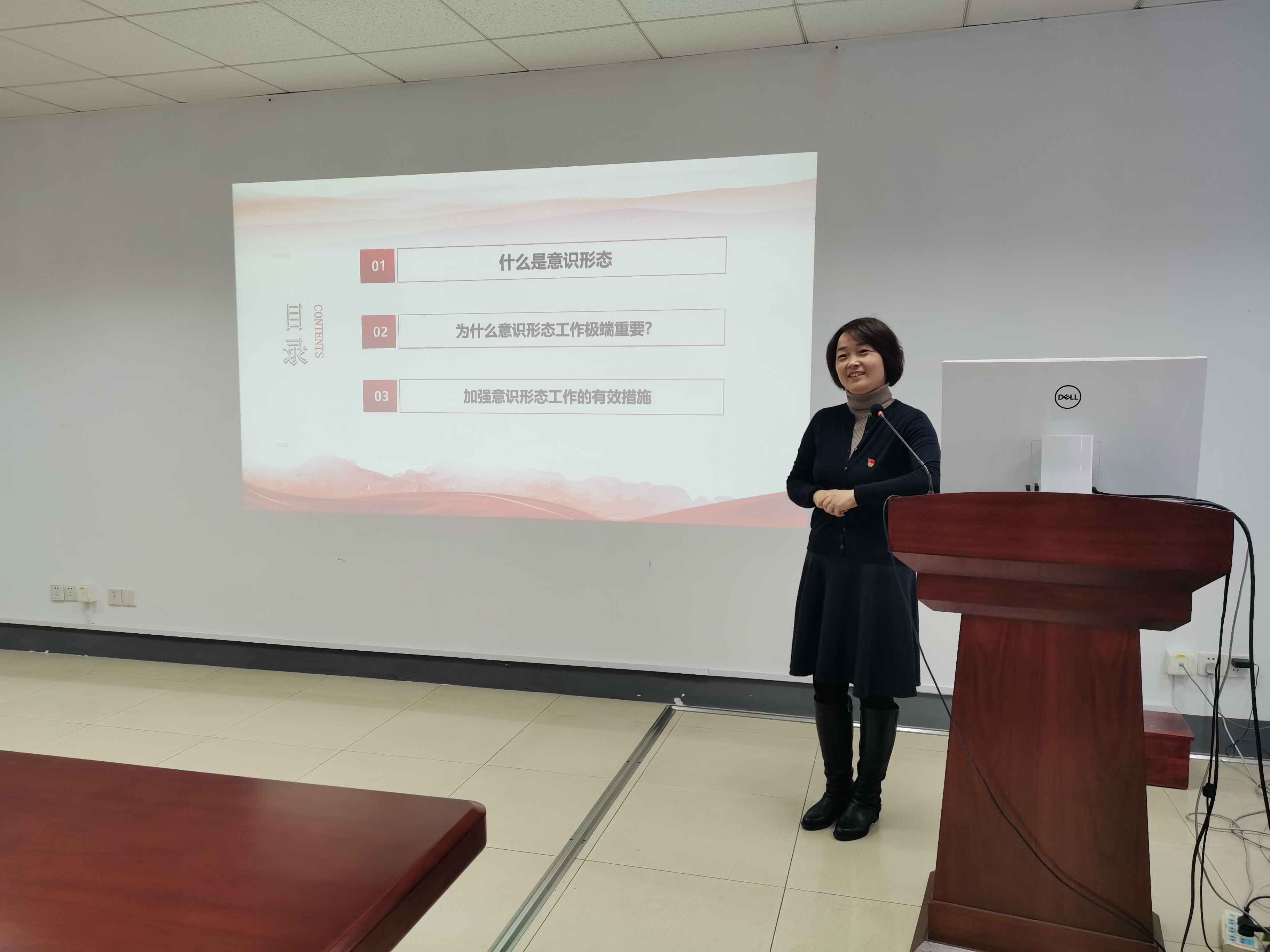 12月3日下午,公司党委书记尹志丽在教2-314会议室进行了题为《坚定不移做好新时代意识形态工作》的专题党课,公司党委委员聆听了党课。