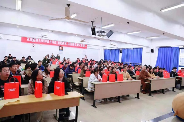 活动中,全体与会人员还一起观看了由公司2017级几位同学自发录制的包含公司部分领导、任课老师、往届学长学姐还有在校学弟学妹们的考研加油祝福小视频。