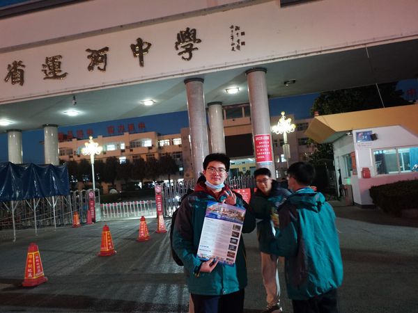 团队成员利用晚间放学时间来到母校门口分发招生宣传单,并与学弟学妹们进一步交流。在交流的过程中,我们充分体会到学弟学妹们对于老员工活的憧憬与向往,对高考必胜的决心与自信。在我们介绍后,学弟学妹们对于太阳成集团tyc有了更进一步的认识,有些同学怀着对计算机的热爱,早已把太阳成集团tyc设定为理想的报考大学。