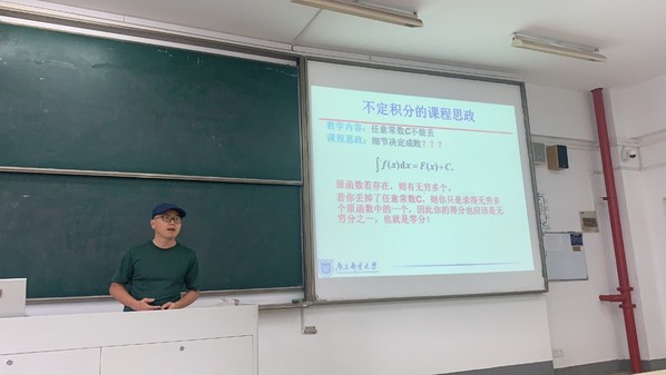 接着中心韩欣利副教授做了《不定积分》课程思政示范。韩老师首先介绍了他对课程思政的理解,他认为在思政教学过程中除了要融入到主线教学中的关于哲学、政治、马列主义等内容之外,还应引入一些做人,做事的道理,以及一些积极的人生观,价值观。比如,在计算不定积分时,通过原函数不唯一,计算方法不唯一,引入“条条大路通罗马”这一名言,告诉大家做成一件事的方法不止一种,人生的路也不止一条,等着我们发现,鼓励员工在未来的学习生活中要有积极的心态,以及百折不挠的勇气。又比如,在计算不定积分时,求出一个原函数以后,需要加一个常数C的符号,以涵盖所有的原函数,但是在教学过程中发现,很多员工往往会忘记加这个常数符号。韩老师以此为例指出细节决定成败,以及行百里九十半的道理等等。