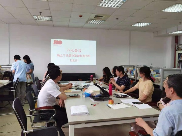 2021年6月30日上午,信息与计算科学系支部全体党员和信息与计算科学系全体教师在教2-326(1)办公室集中开展党史学习教育系列活动。本次活动由支部书记戴建新召集,由该支部党员殷晓晖老师轮值主持,分享学习心得和体会。副经理金正猛教授以普通党员身份参加了党课学习。