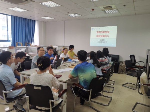 2021年7月2日上午,信息与计算科学系支部全体党员教师在教2-326(1)办公室集中开展党史学习教育系列学习党课。副经理金正猛教授主讲了“百年辉煌党史、信息报国初心”专题党课。本次党课活动由支部书记戴建新召集和主持。