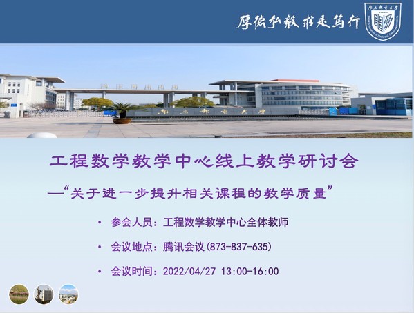 为落实立德树人根本任务,进一步提升工程数学相关课程的教学质量,2022年4月27日下午,工程数学教学中心通过线上方式组织召开了“关于进一步提升课程教学质量”教学研讨会。公司党委副书记、经理唐加山,副经理刘胜利以及工程数学教学中心全体教师参加了此次研讨会,会议由中心主任孔告化主持。