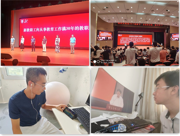 2022年9月9日14:00,公司在青春剧场举行了第38个教师节庆祝大会,大会进行了线上同步直播。物理实验教学中心的全体教师(下午有上课任务的除外)都自行观看了视频直播,有少数老教师和新教师代表在现场参加了庆祝大会,大家共同感受了节日的热烈气氛。