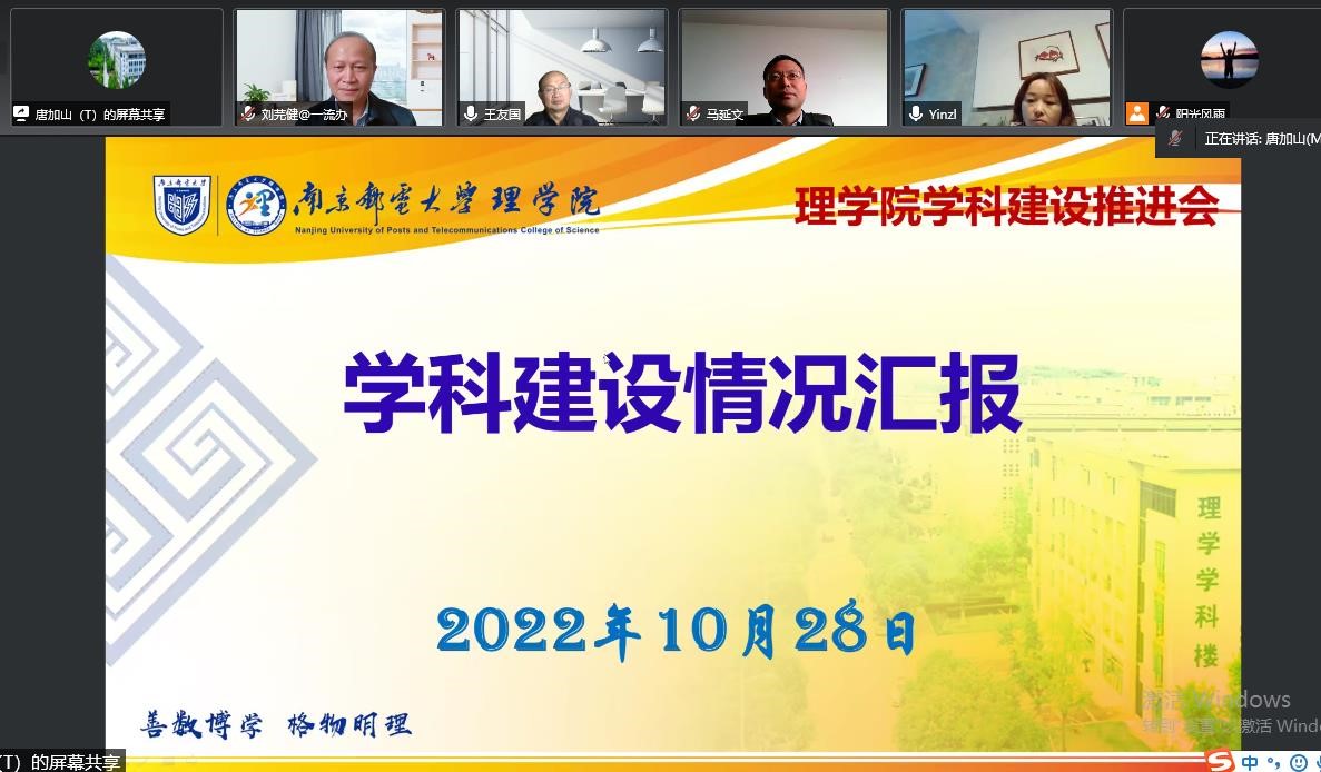10月28日下午,太阳成集团tyc以线上方式召开团队建设推进会。公司党委常委、副董事长王友国教授,苏州工业职业技术公司经理马延文教授,校一流学科和高水平大学建设办公室主任刘芫健教授,公司党委书记尹志丽,党委副书记、经理唐加山等公司班子成员,数学和物理学学科主干方向负责人出席会议,会议由校一流学科和高水平大学建设办公室主任刘芫健教授主持。
