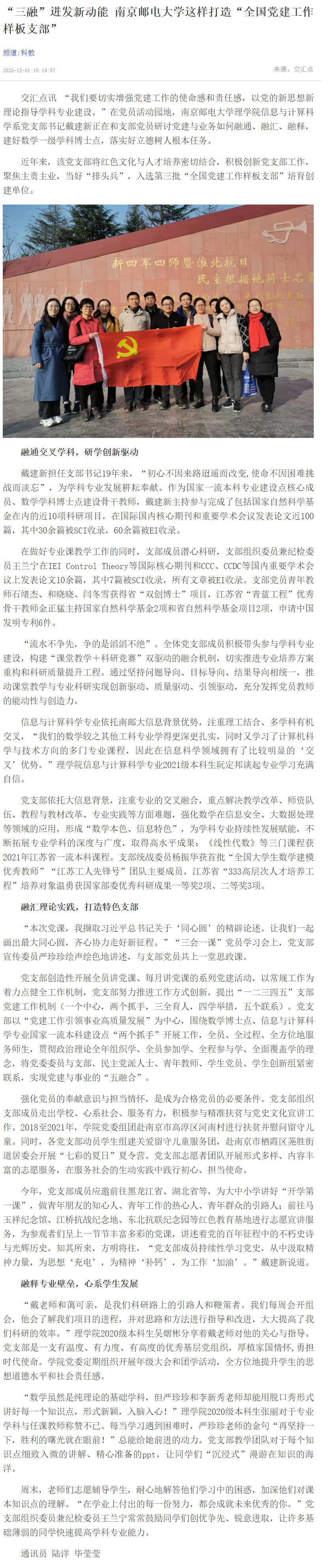【新华日报客户端】“三融”迸发新动能 太阳成集团tyc这样打造“全国党建工作样板支部”