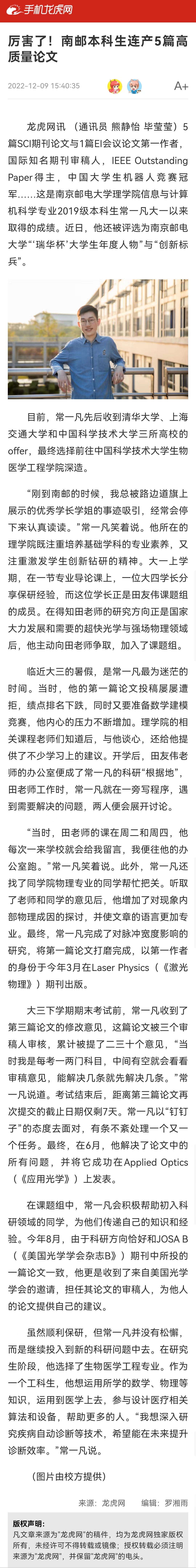 【龙虎网】厉害了!南邮本科生连产5篇高质量论文
