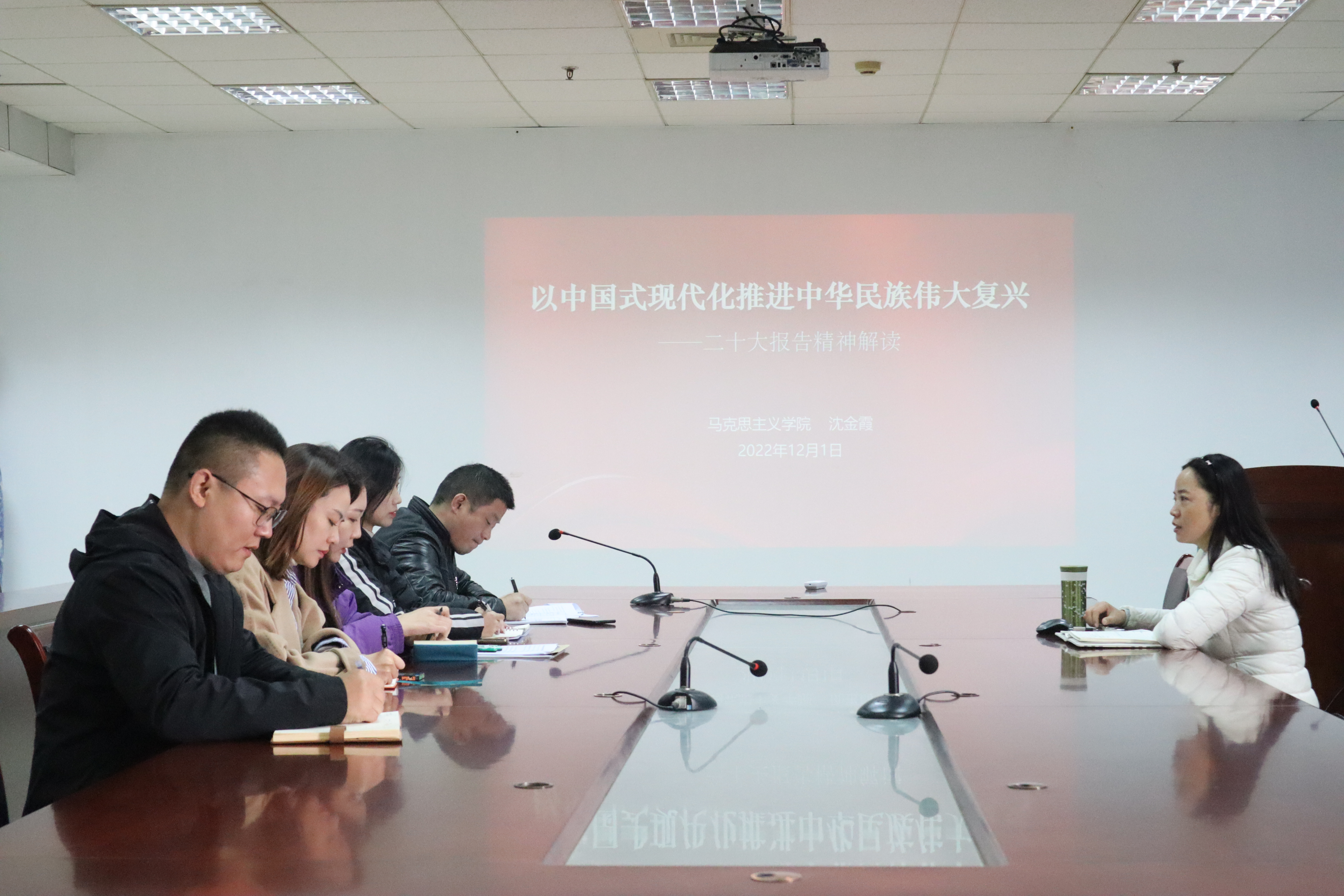 为深刻学习领会党的二十大精神,进一步加强辅导员队伍建设,积极构建“大思政”育人格局,2022年12月1日下午,公司组织开展了主题为“以中国式现代化推进中华民族伟大复兴——二十大报告精神解读”的辅导员沙龙,太阳成集团tyc思政课导师、太阳成集团tyc马克思主义公司副教授沈金霞担任主讲,会议由公司党委副书记、副经理汪颖主持,太阳成集团tyc全体辅导员参会。