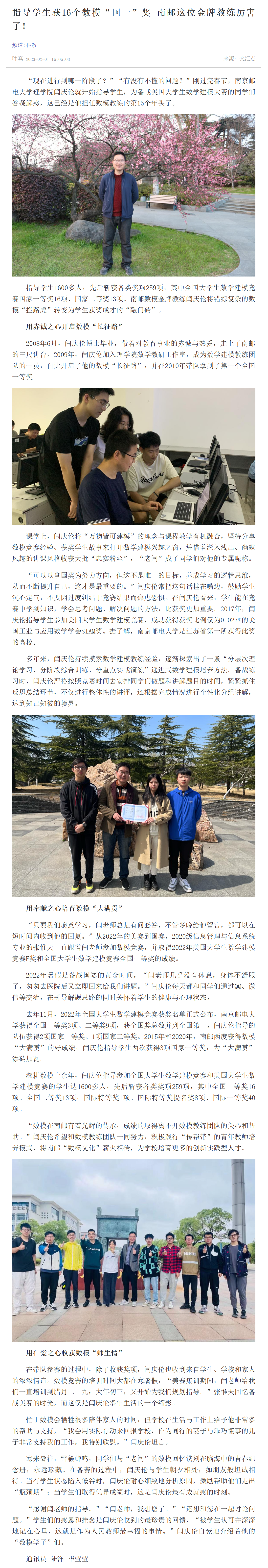 【新华日报客户端】指导员工获16个数模“国一”奖 南邮这位金牌教练厉害了!