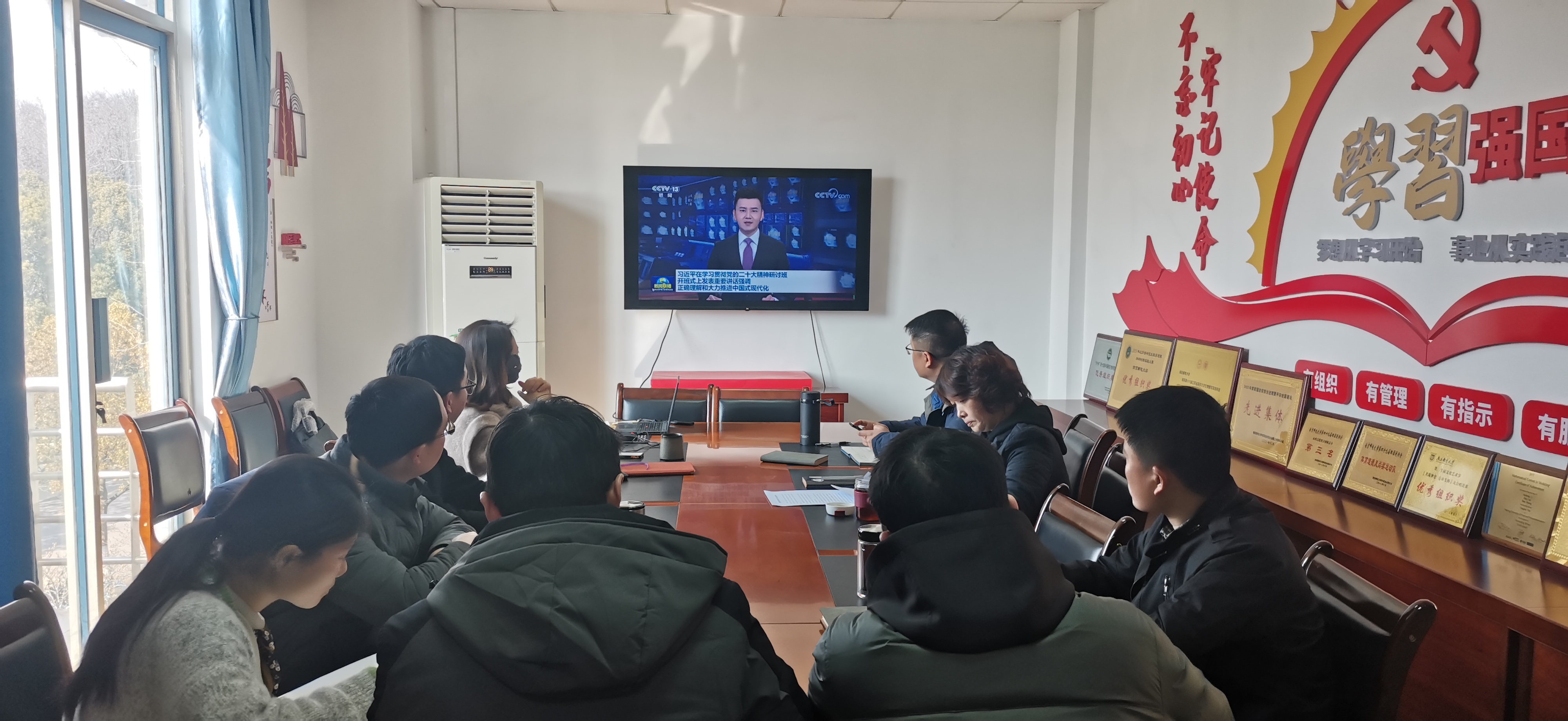 学习会上,中心组成员集体观看学习视频,深入学习习近平总书记在学习贯彻习近平新时代中国特色社会主义思想和党的二十大精神研讨班开班式上的重要讲话精神,中心组成员谈心得体会。