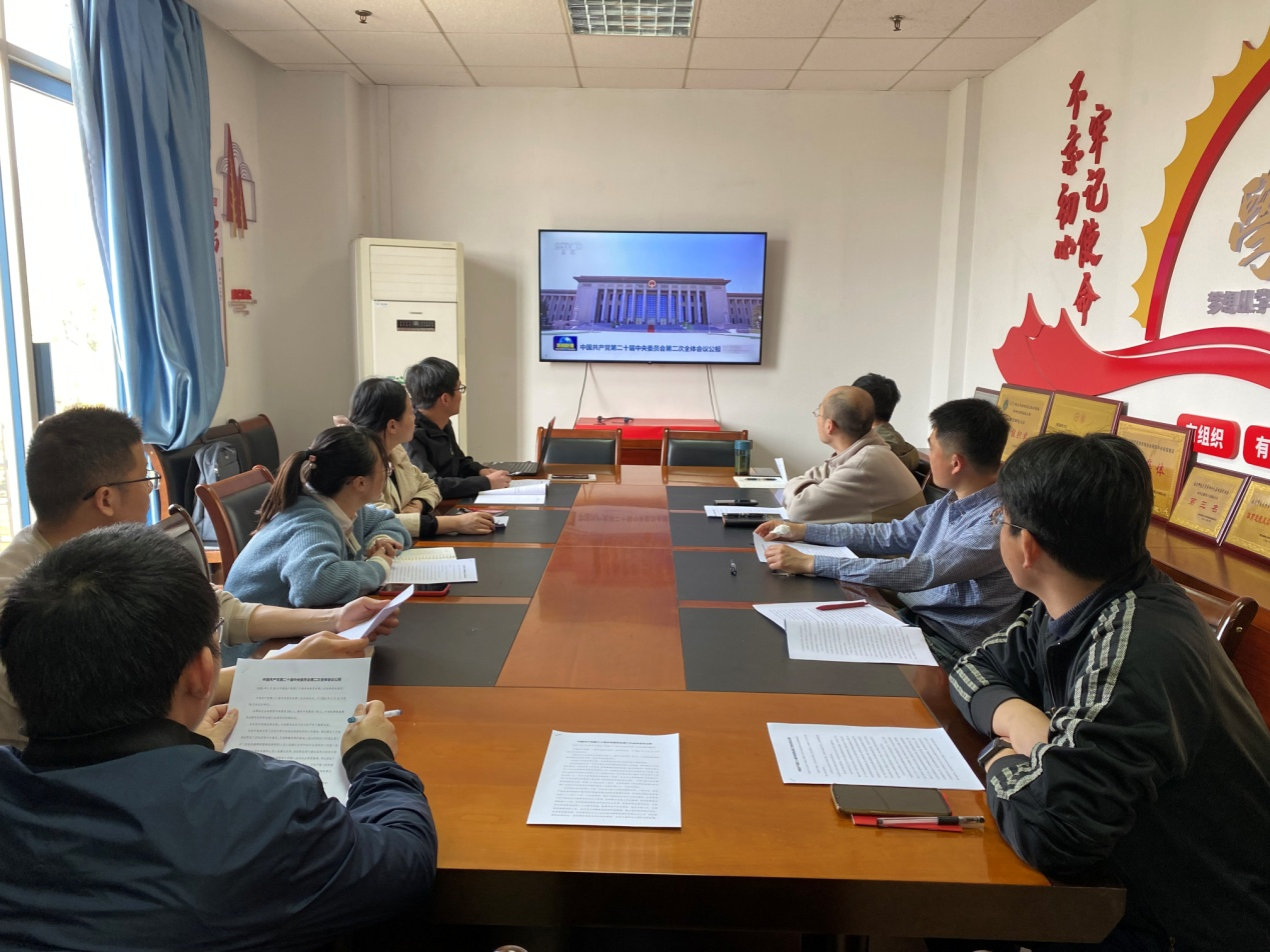 支部党员首先集体观看CCTV13新闻频道播出的视频“中国共产党第二十届中央委员会第二次全体会议公报”,边观看边在公报学习资料上做记录,随后依次发言。各参会人员从自身教学、科研、管理和生活中的实际情况出发,结合公报中的关键字句,围绕“科技部改革”、“宣传贯彻党的二十大精神进校园”、“就业与考研”、“经济发展与产业需求”、“中国特色大国外交”、“国家治理”、“班主任、本科生导师及任课教师工作”等方面做热烈讨论和心得分享。
