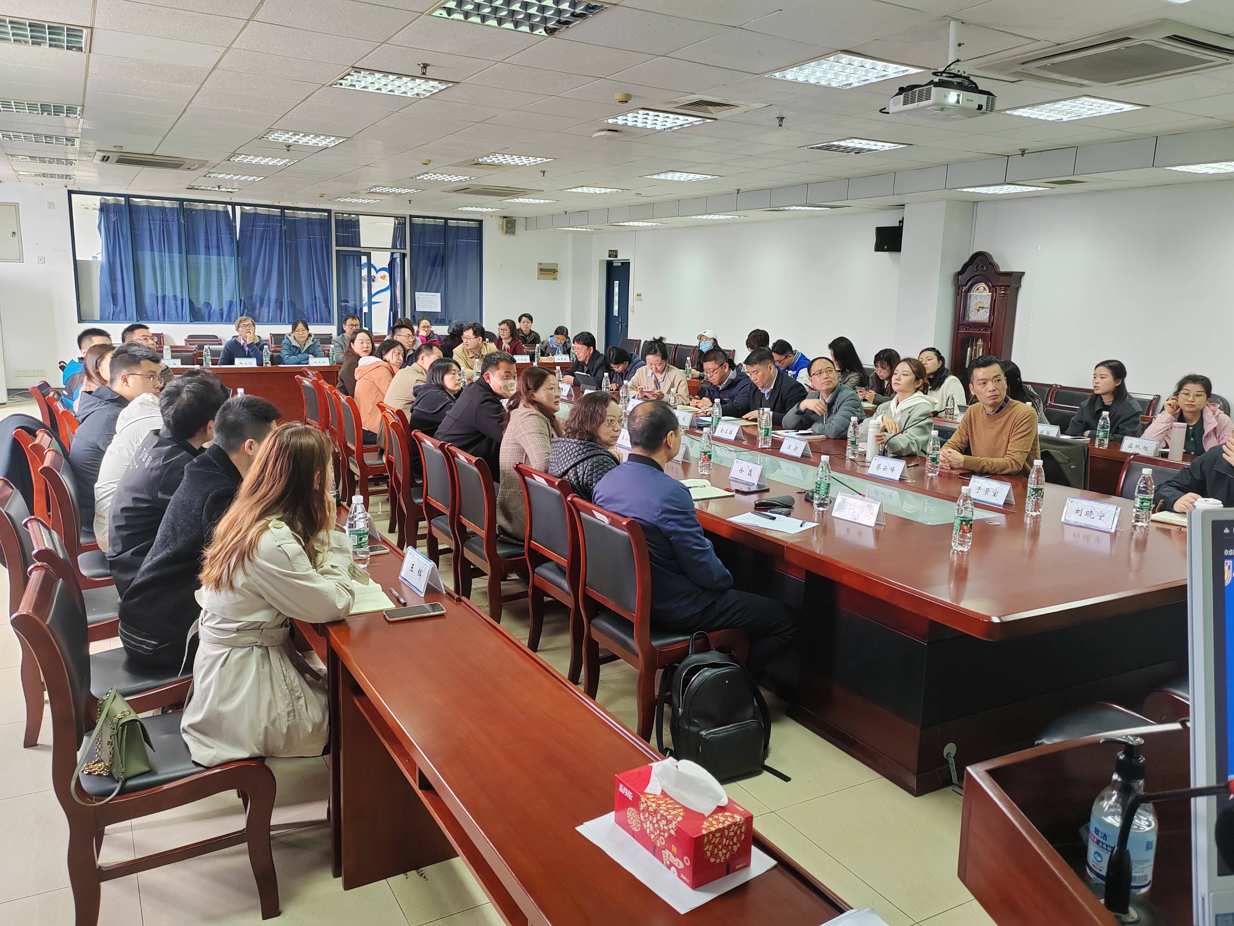 随后中心副主任秦芳芳和高数课程组负责人代表万彩云老师结合课程类别、教学实践和问卷调查,依次对近三年高等数学各课程成绩数据做了详细剖析,指出了员工在高数课程学习中存在的主要困难和问题。接着各公司副书记、副经理和辅导员结合各自公司专业需求和员工个体的不同特点对高等数学课程的教学和管理积极建言,气氛热烈。最终对“如何对员工加强科学管理、如何改善员工高数学习策略和如何更高效提高课堂教学质量”等达成了初步共识。