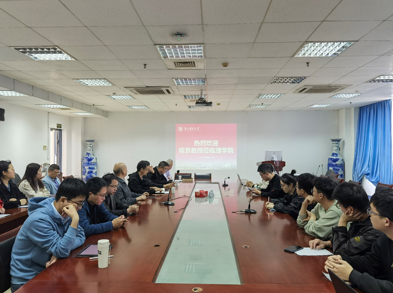 陈京教授为大家带来了题为“物质的光电离---从光电效应到阿秒物理”的学术报告。强场物理是当今物理学研究中重要的前沿领域,其中原子分子在强激光场中的电离和高次谐波的产生的动力学过程研究则是强场物理领域的研究热点。在报告中,陈教授详细介绍了从光电效应到阈上电离实验与理论研究历程,激光技术的发展,电子能谱及电离过程的分类,里德堡激发,强场下非微扰图像以及理论模型(“强场近似SFA”模型)等前沿理论,让听众对强激光与物质相互作用的物理过程有了一个整体的认识和了解。陈京教授还重点介绍了强场作用下高次谐波产生获得极紫外(XUV)相干光源,原子分子结构和动力学过程的阿秒超快成像探索等新现象和新应用。同时,陈教授还展示了中红外波段阈上电离能谱“低能结构”,并指出其未来发展趋势和应用所面临的挑战。陈京教授的报告深入浅出,引起了与会教师和员工的浓厚兴趣。陈教授的报告内容翔实、语言生动,参会师生在轻松的氛围中学习到了强场物理领域的研究热点、研究方法及其广泛的应用,激发了参会师生极大的兴趣。