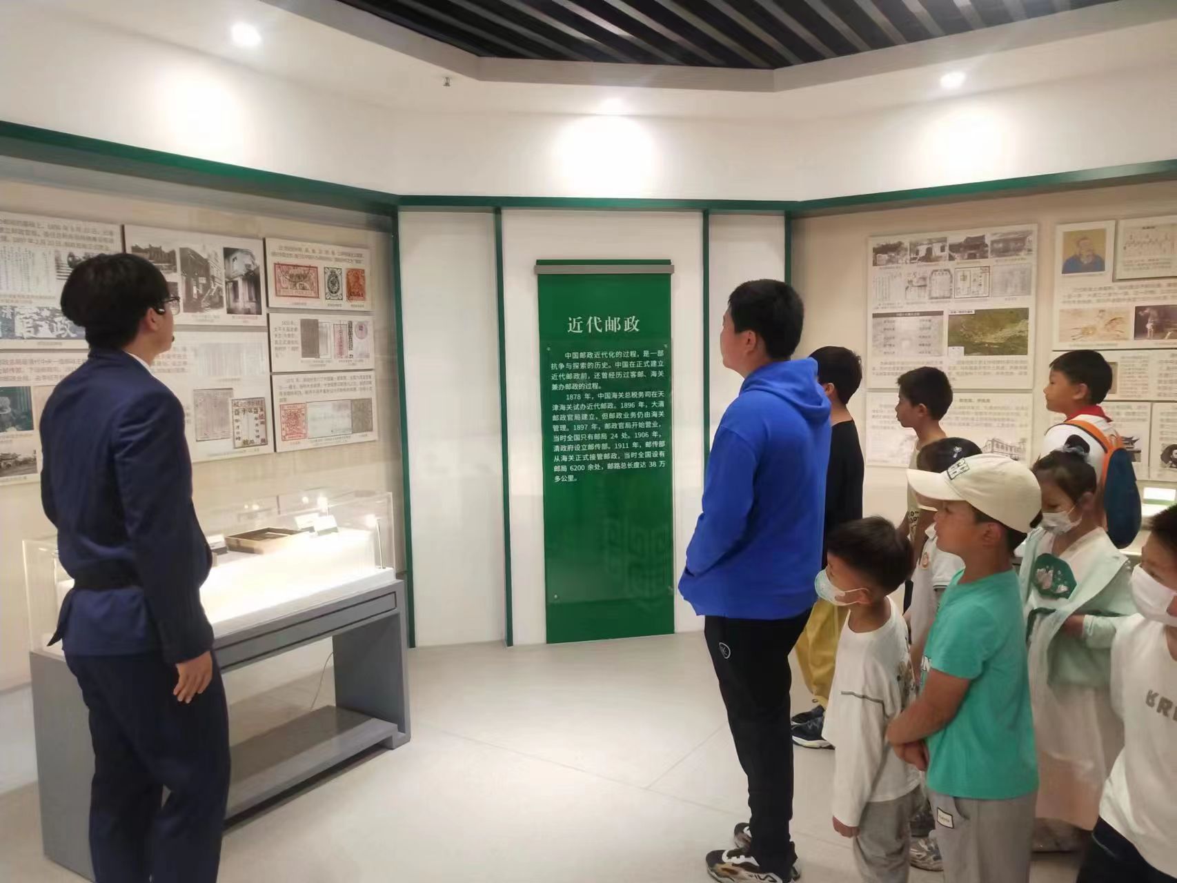 首先,少年儿童及家长依次参观了校史馆、邮政馆以及通信展览馆。校史馆真实还原了公司不同时期的校门,以公司大门的变迁,浓缩性地呈现南邮一路发展、一路传承、一路升华的办学历程。邮政馆及通信展览馆分别以“邮政绿”和“科技蓝”为主色调,介绍了邮政通信在近现代的不断发展,展现南邮在通信领域所作出的努力与贡献。在参观的过程中,少年儿童们了解了南邮“战火生根,战邮铸魂”的红色历史沿革,并领略了我国邮政通信事业的各项建设成就。