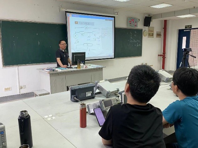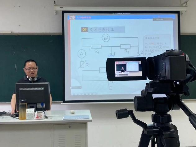 教学沙龙第4讲主讲教师为物理实验教学中心董成林,从事大学物理实验教学工作30余年,讲授题目为“改装电流表实验”,他从替代法测了表头内阻、将表头改装成双量程毫安表的原理和方法、校正该转后电表的方法、电表改装后定级等几个部分详细、清晰地讲解了实验相关内容。