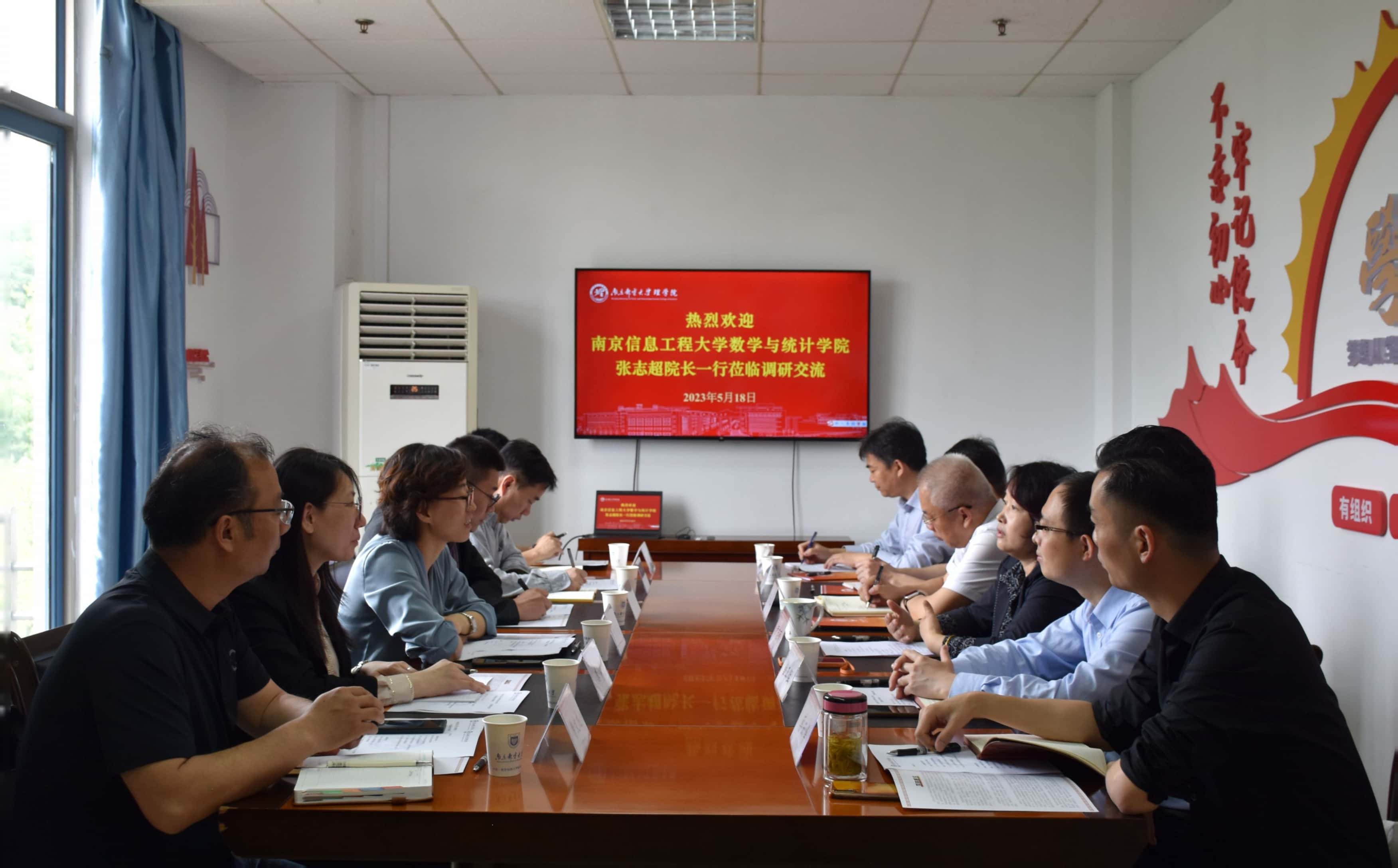 2023年5月18日上午,南京信息工程大学数学与统计公司张志超经理、贾冰书记等公司领导班子一行来公司调研交流。公司党委书记尹志丽,党委副书记、经理唐加山等相关负责人参加了调研交流活动,交流会由尹志丽书记主持。