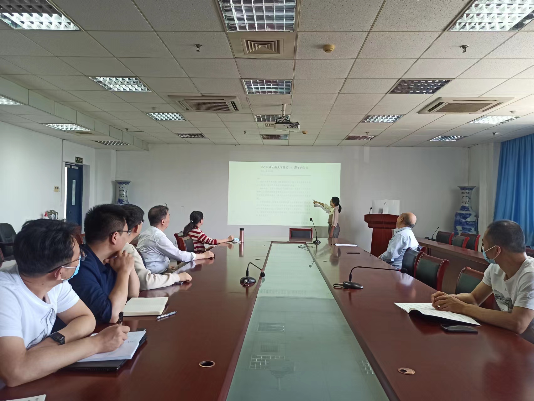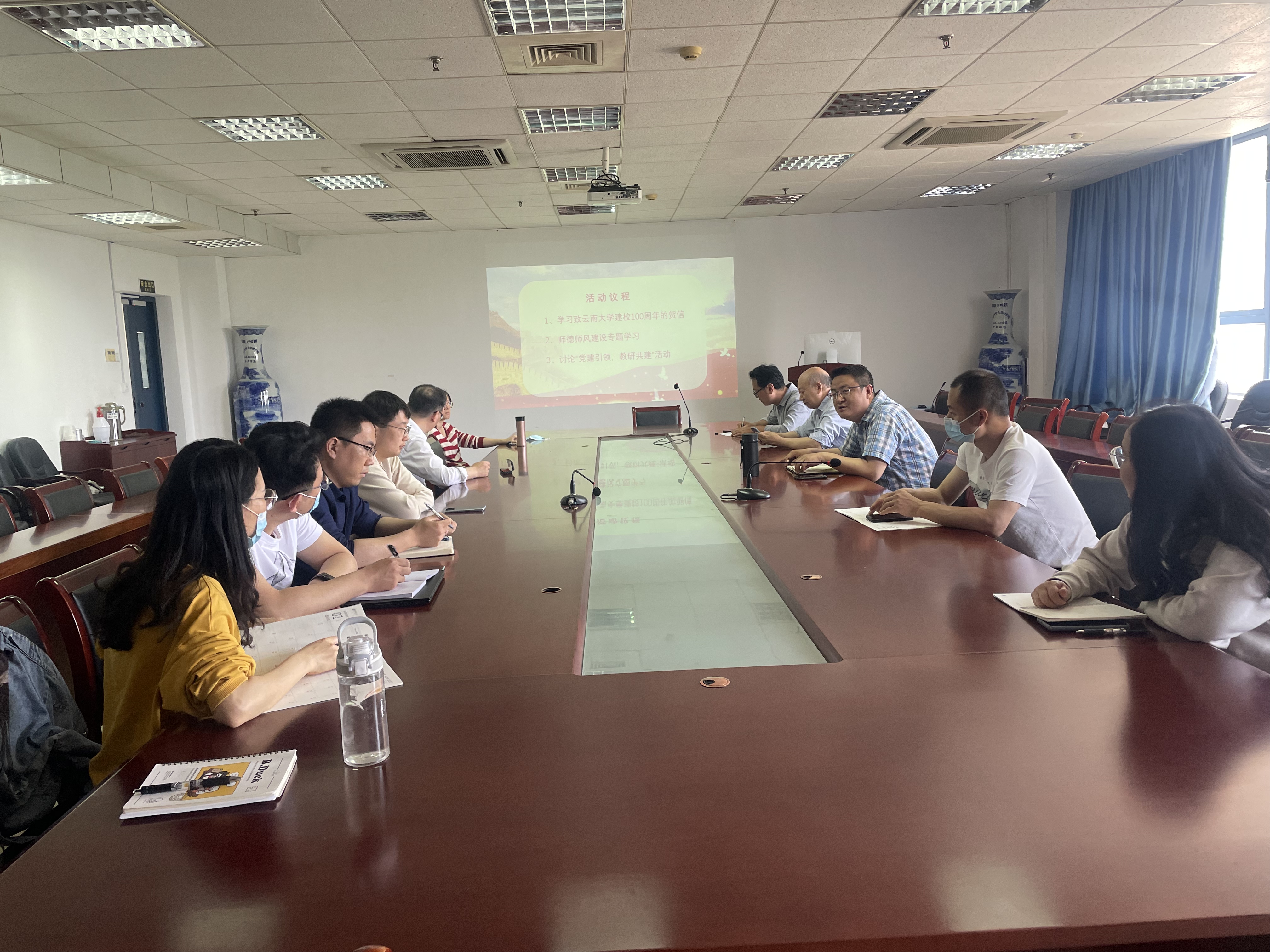 其次,会上针对师德师风建设开展了专题学习。学习了新时代高校教师职业行为十项准则等相关文件规定,强调以德立身、以德立学、以德施教、以德育人。以具体的案例来警示每位党员老师要明确责任义务,知晓“底线”“红线”。