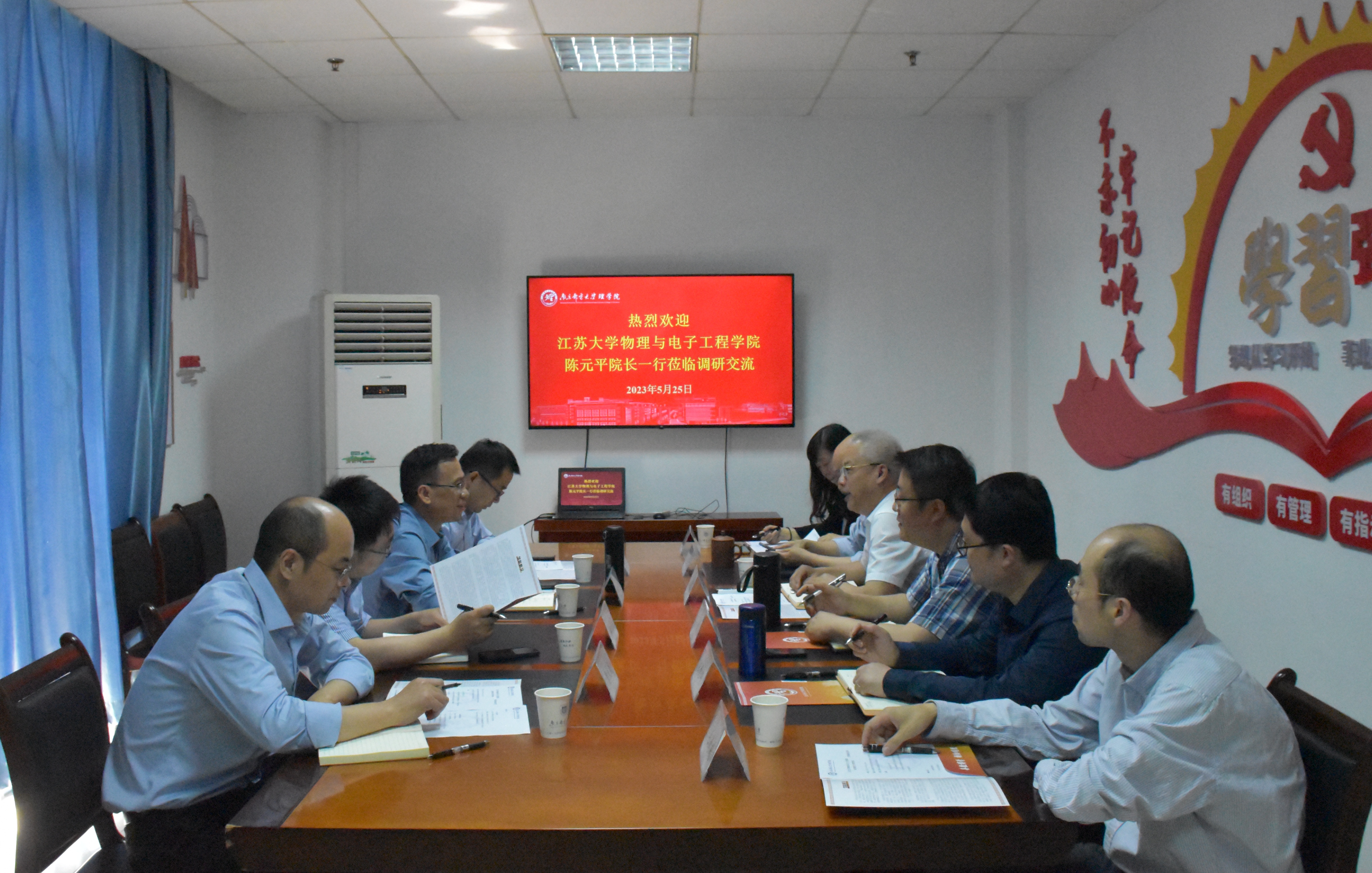 2023年5月25日下午,江苏大学物理与电子工程公司陈元平经理一行来公司调研交流。公司经理唐加山主持会议,公司副经理普勇、物理学学科带头人李兴鳌以及相关负责人参加调研交流。