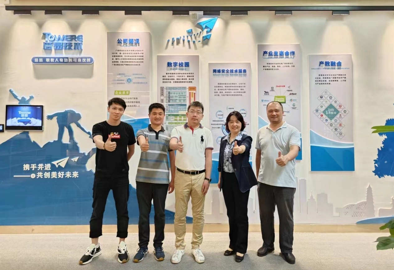 招生组一行随后还来到公司05级员工颜靖、罗茂云合伙创办的高新技术企业广西塔易信息技术有限公司。该公司是一家以“教育+IT”综合服务为核心业务的创新型企业,已成为国家高新技术企业和广西壮族自治区产教融合试点企业。从塔易科技蓬勃向上、富有活力的经营理念和企业文化中,我们也深刻感受到了公司“无创新不南邮”的人才培养理念。两位员工也表示,希望公司能一如既往培养更多电子信息领域的优秀人才,也特别欢迎母校广西籍的优秀毕业生加入塔易科级,为家乡的高新技术行业和数字经济发展贡献南邮力量。