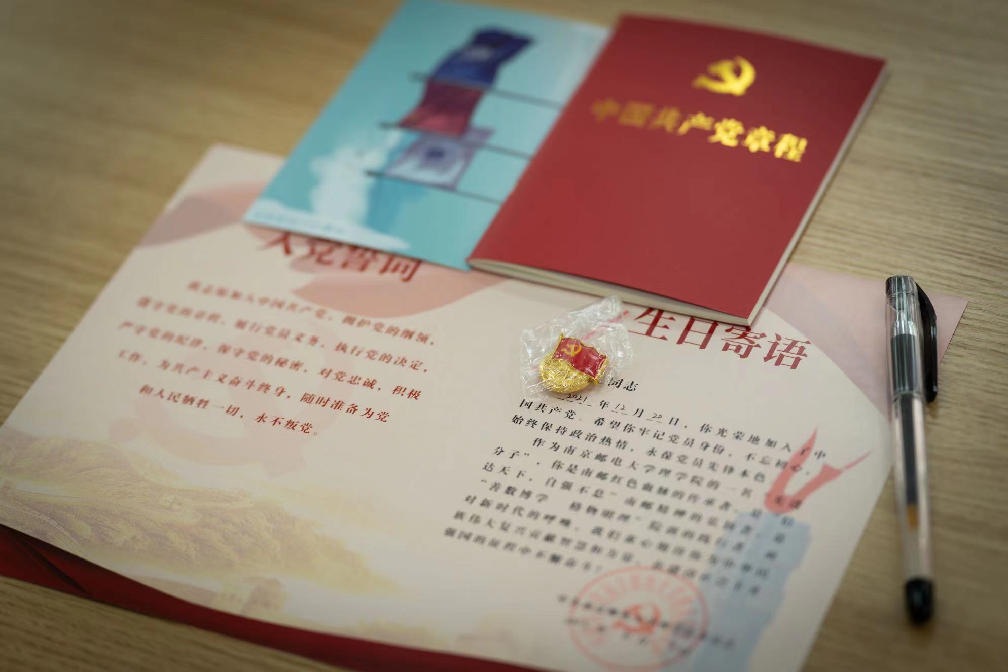 共过一次政治生日。公司党委为全体毕业生党员精心设计带有南邮印记、太阳成集团tyc特色的专属的政治生日贺卡,同时又向每一位毕业生党员赠送了一枚党徽、一本新《中国共产党章程》,以及《习近平与老员工朋友们》、《苏东坡传》等书籍,作为政治生日礼物。希望毕业生党员能牢记党员身份,永葆党员先锋本色,在深入学习贯彻习近平新时代中国特色社会主义思想的同时,不忘传承弘扬中华优秀传统文化,赓续中华民族不惧新挑战、勇于接受新事物的无畏品格。