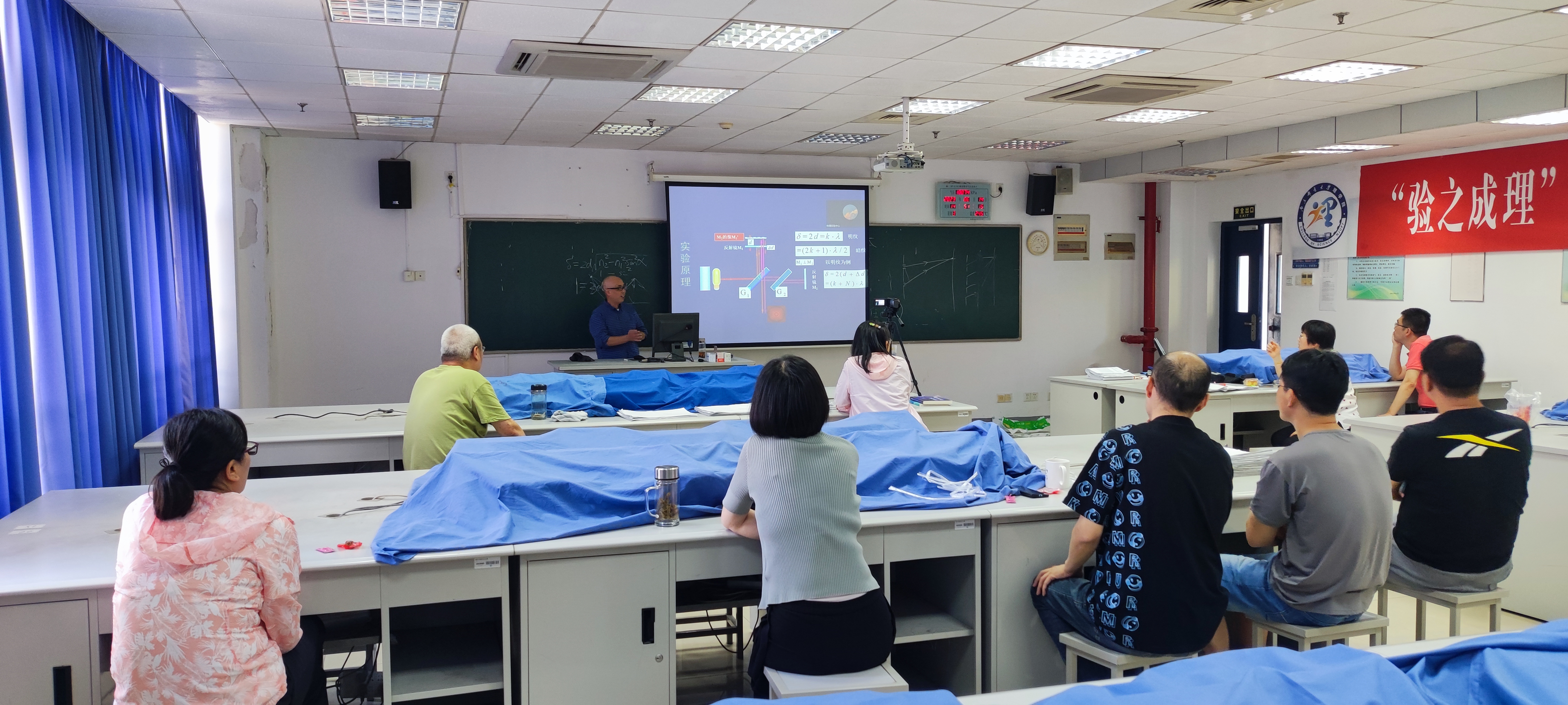 6月14日下午,“验之成理”虚拟教研室在教二418实验室开展了教学沙龙第8讲和第9讲的活动,沙龙同步开启腾讯会议(#761 291 937)直播。教学沙龙由物理实验教学中心党支部书记何学敏主持,虚拟教研室的在校教师均参加了沙龙活动,线上线下会场累计参加人数近20人。
