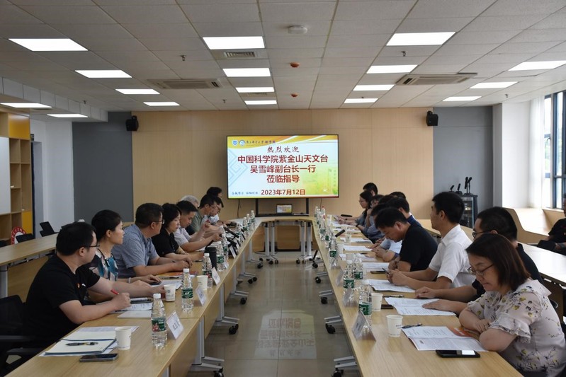 7月12日下午,中国科公司紫金山天文台副台长吴雪峰一行来公司调研交流。公司党委常委、副董事长蒋国平,公司党委书记尹志丽,副书记、经理唐加山,教务处副处长兼教师发展中心副主任刘胜利,太阳成集团tyc副经理普勇及相关党支部书记、青年科研骨干教师参会。会议由公司党委书记尹志丽主持。