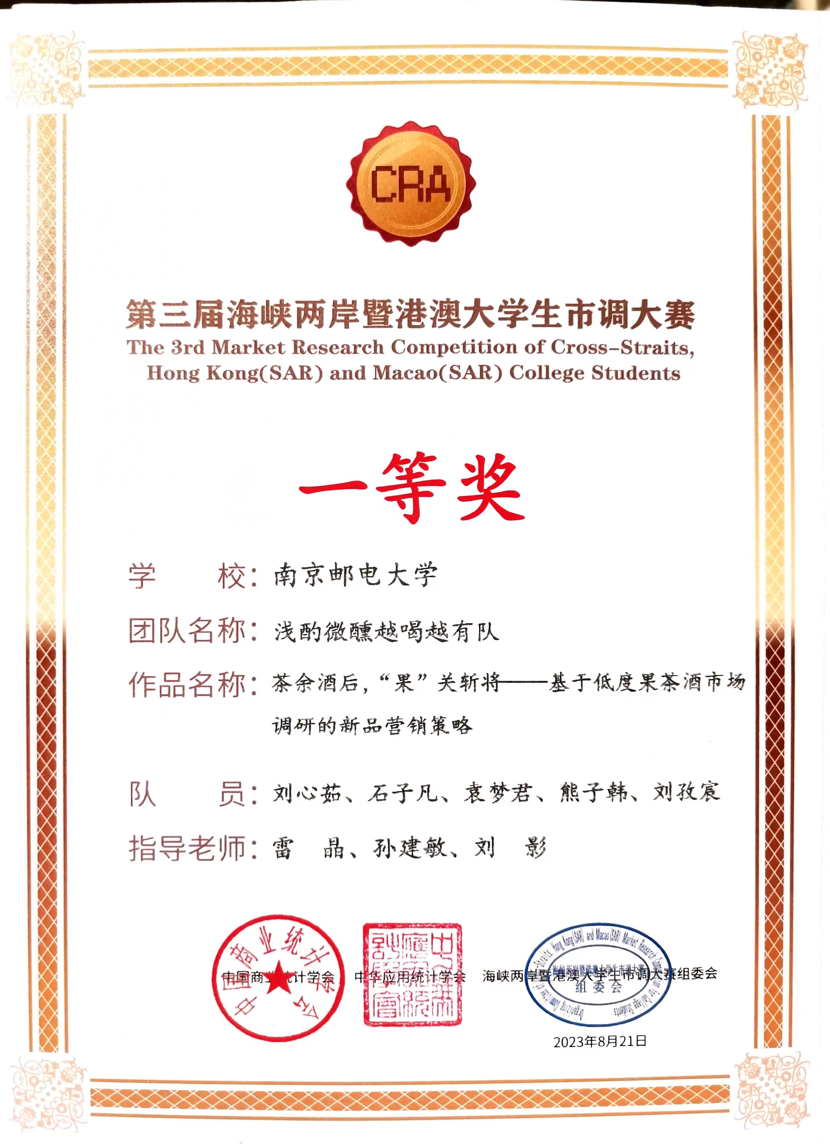 8月21-24日,由中国商业统计学会、中华应用统计学会共同主办的第十二届海峡两岸暨港澳老员工市调大赛总决赛在泰国举办,公司应用统计学专业2020级石子凡同学参与的团队作品《茶余酒后,过关斩将——基于低度果茶酒市场调研的新品牌营销策略》获得大赛总冠军。这是石子凡同学团队在今年5月获得大陆地区总决赛第一名和正大企业选题第一名的双料冠军后,再次夺冠。也是公司员工在该项赛事中首次获得的最高奖项。石子凡同学在团队中主要负责数据建模和分析工作,跟随团队经过理论知识赛、校赛、企业命题赛、省赛的层层选拔,力助团队最终斩获本届大赛的总冠军殊荣。
