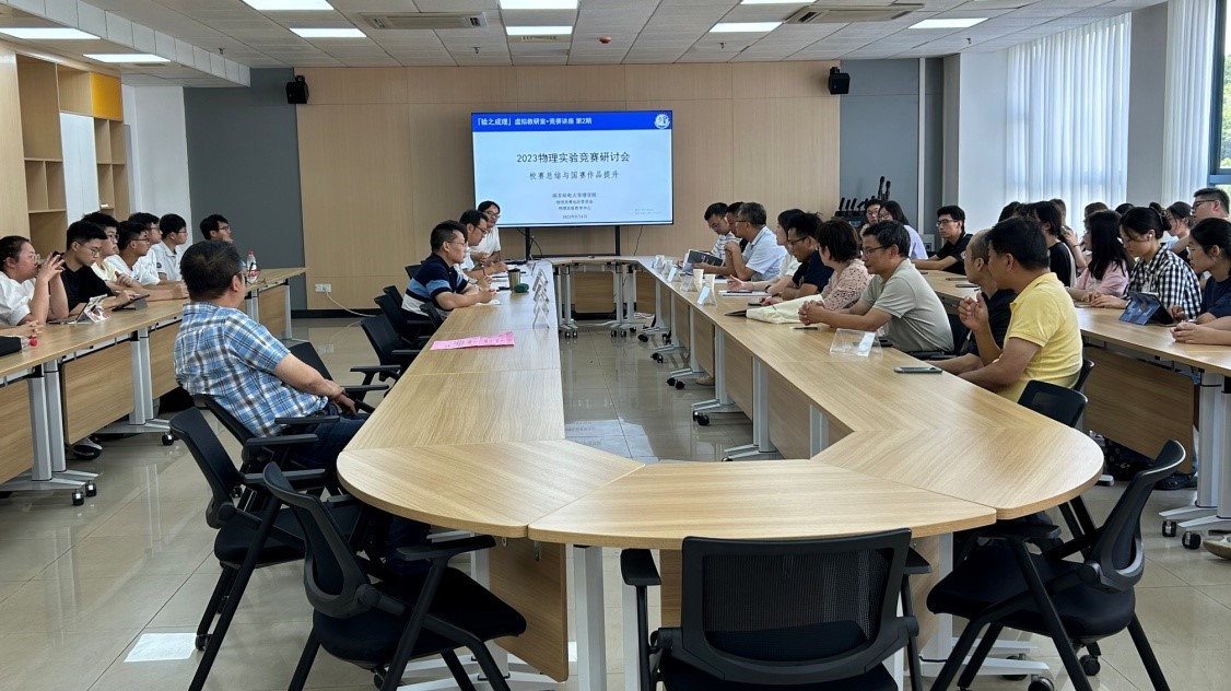 9月6日下午,2023物理实验竞赛研讨会暨“验之成理”虚拟教研室·竞赛讲座第2期在教二327举行。研讨会由物理竞赛委员会主任何学敏主持,太阳成集团tyc高丽副经理、普勇副经理和教务处实践科贺超凯科长到场指导,章海锋教授、邹辉副教授、张红光副教授等专家对国赛作品进行现场点评和改进指导。10余位物理教师和近50名员工参加了研讨会,整场会议交流时间3个多小时,反响良好。