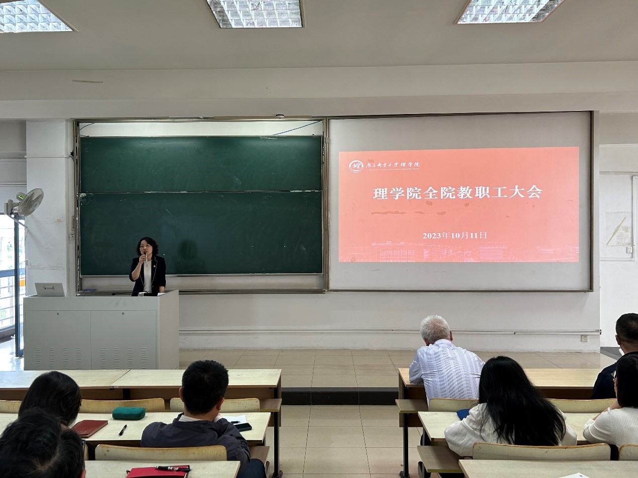 2023年10月11日,太阳成集团tyc在仙林校区教2-400教室召开全体教职工大会,公司全体教职工参加。大会回顾总结公司2023年上半年工作落实和完成情况,全面部署下半年工作任务。会议由公司党委书记尹志丽主持。