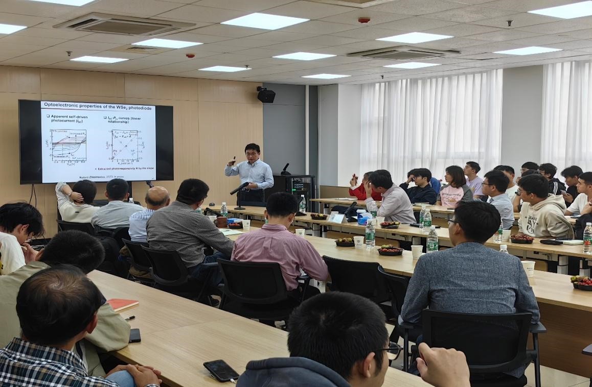 柴扬教授作了题为“Bioinspired in-sensor computing for artificial vision”的专题报告,首先阐明了新的感官计算范式的必要性,接着介绍了其研究团队一直致力研究的用于人工视觉的仿生传感内计算,最后和大家分享了其团队在该领域的最新研究。讲座后,与会师生积极提问。柴扬老师详细地解答每一位提问者的问题。