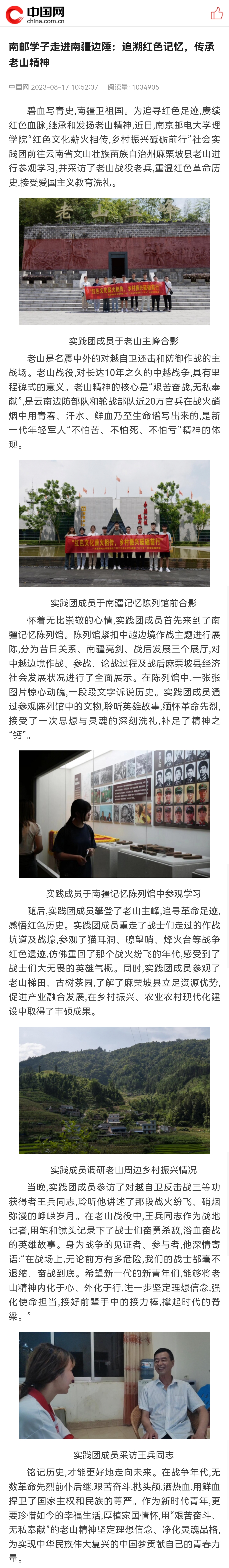 【中国网】南邮学子走进南疆边陲:追溯红色记忆,传承老山精神