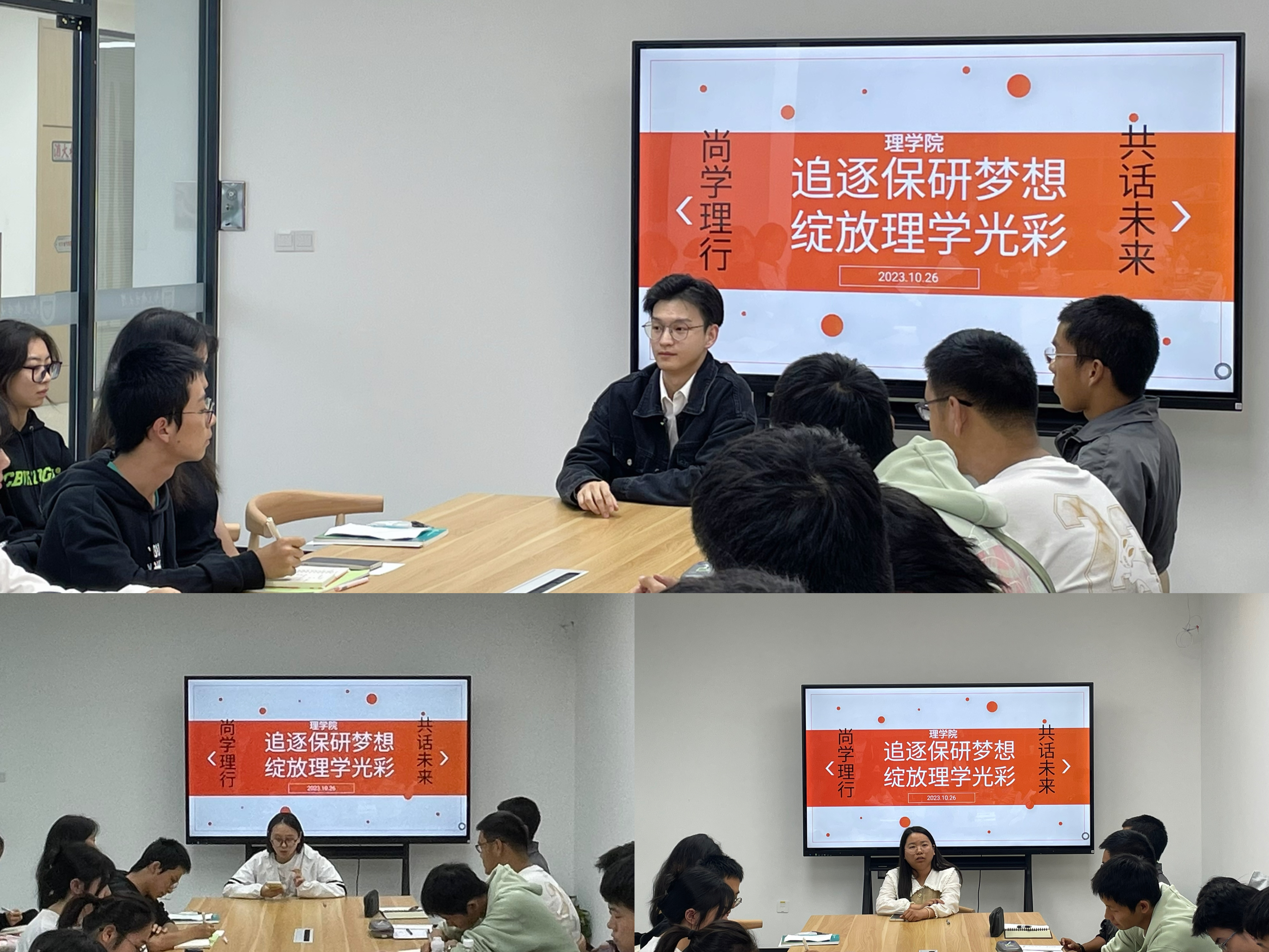 石子凡同学首先详细讲述了自身保研至国防科技大学的经历,并从保研的具体要求、所做的准备、参与竞赛的经验等方面进行了分享,他提醒大家要找准自己的目标专业和导师,多参与竞赛积累经验,并要平衡好竞赛和学业之间的关系,将时间最大化利用;其次,郎千同学以自身的任职为主线,分享了自己的员工工作经历、学习情况以及成功入选中国青年志愿者研究生支教团的经历,她希望大家就读本科期间,在保证学习成绩的前提下多多参与公司、公司举办的各项活动,这可以培养大家的自信心,也可以让自己的老员工活更加充实,学习也会变得更有奔头;最后,李婷婷同学回顾了自己的大学学习生活,分享了学习经验,她认为对于保研一定要提前做好充分的准备,多充实自己、提高自己,无论结果如何,一定要尽自己最大的努力向前,做到无愧于心,让青春不留遗憾。