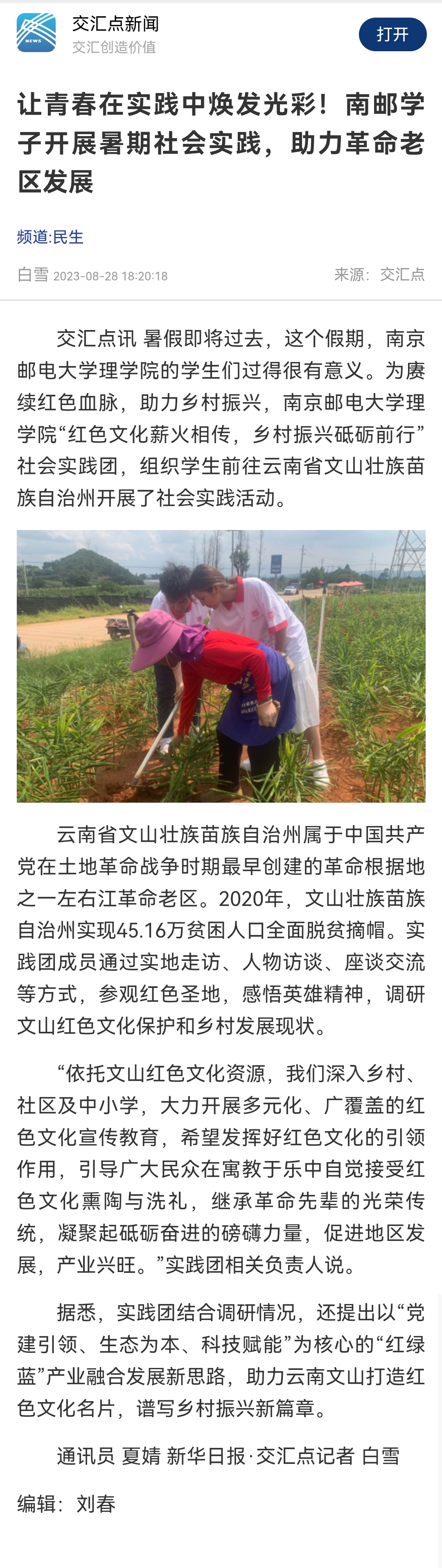 【新华日报客户端】让青春在实践中焕发光彩!南邮学子开展暑期社会实践,助力革命老区发展
