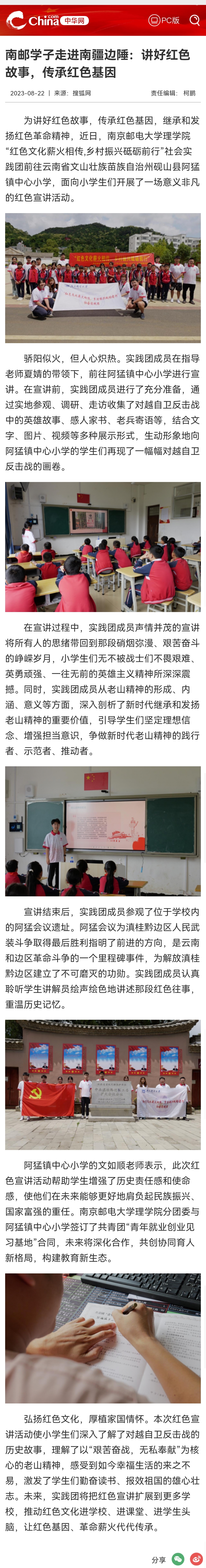 【中华网】南邮学子走进南疆边陲:讲好红色故事,传承红色基因