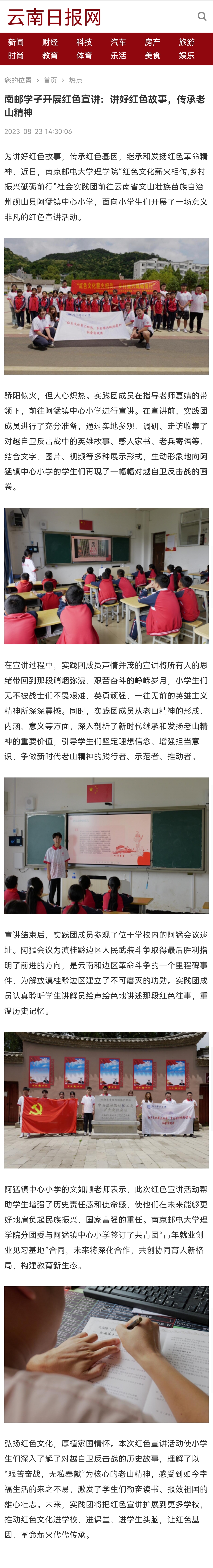 【云南日报网】南邮学子开展红色宣讲:讲好红色故事,传承老山精神