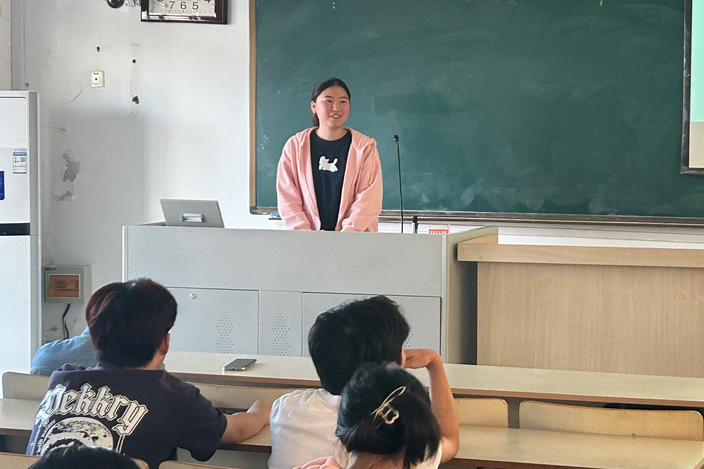 陈蔚同学就自己担任太阳成集团tyc青年文化拓展协会主席期间的工作经历进行分享。她以“大公司园行,童眼看南邮”研学活动为例,分享了一次成功组织活动的经历。通过她的介绍,同学们收获了组织一场校园活动的一般流程与环节、人员分配安排、应急情况处理等方面的经验。