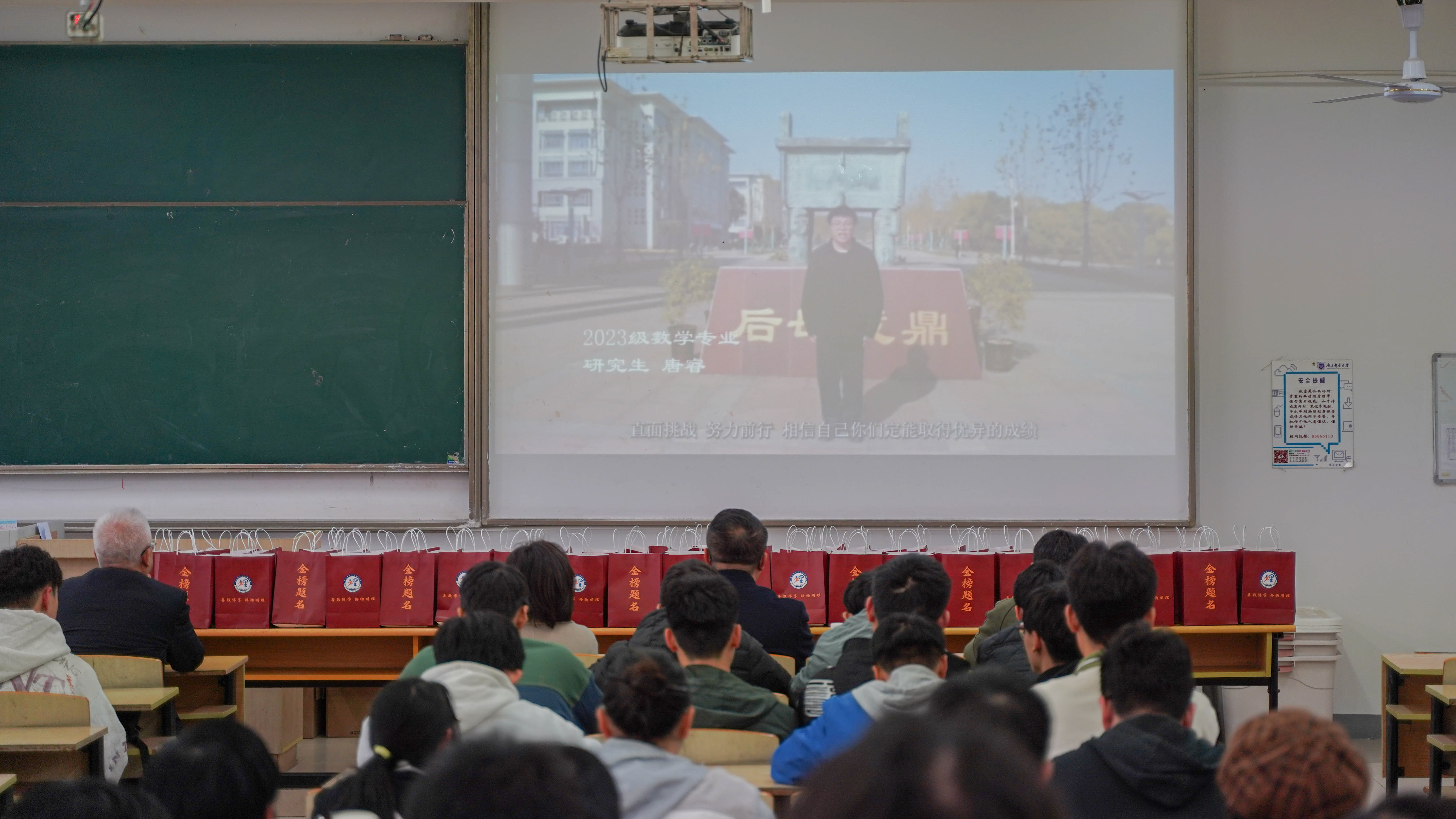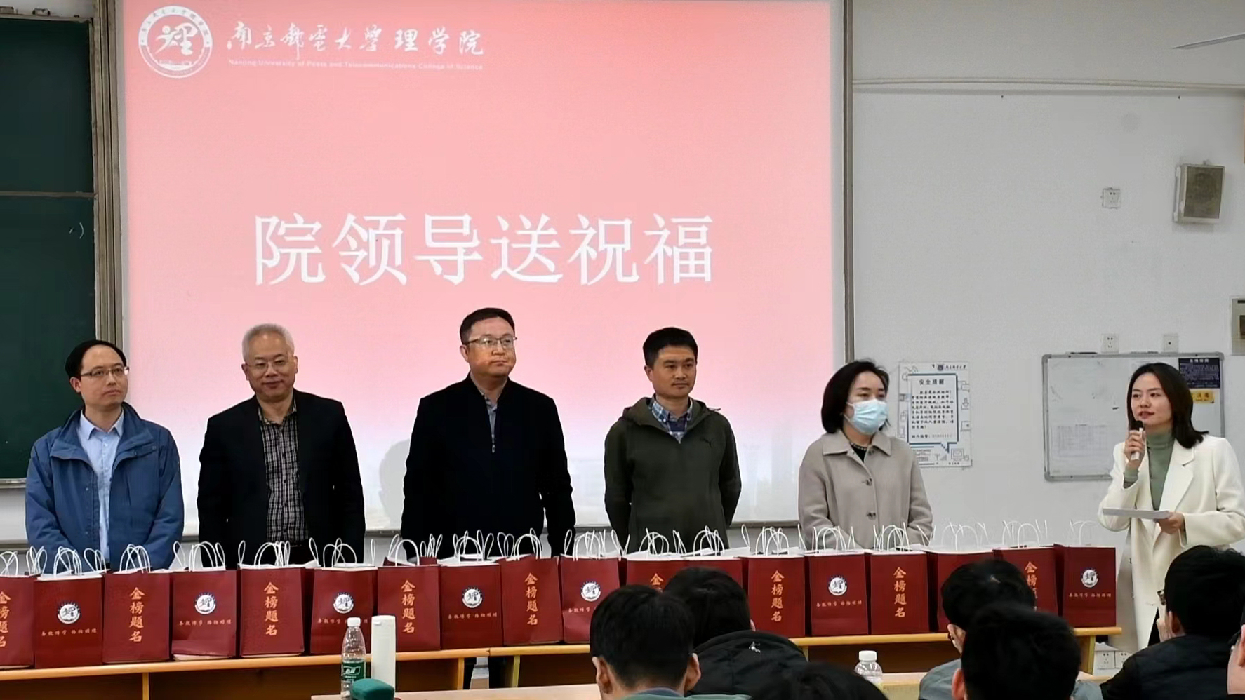 会上,汪书记首先播放由同学们精心录制的考研祝福视频。视频中同学们振奋人心的鼓励、真挚美好的祝福,让在场的每一位考研学子都备感温暖。随后,各位院领导也分别表达了对考研学子们的殷切关心与期望。同时,唐书记还细心地提醒同学们要养成规律作息、健康饮食的好习惯,以最饱满的状态迎接考研。