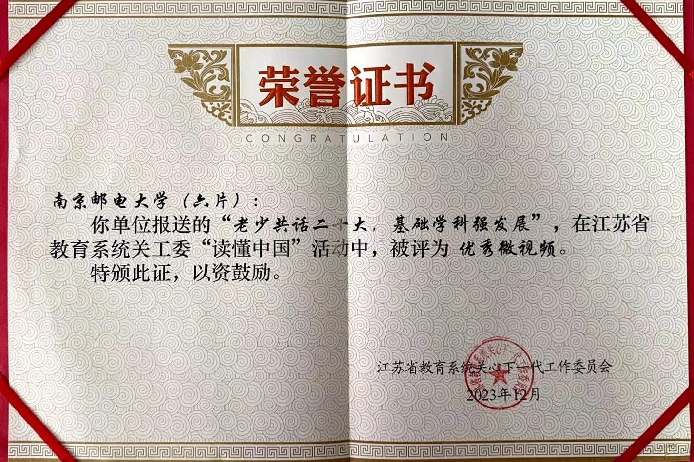 太阳成集团tyc报送项目获省教育系统关工委“读懂中国”活动优秀微视频奖项
